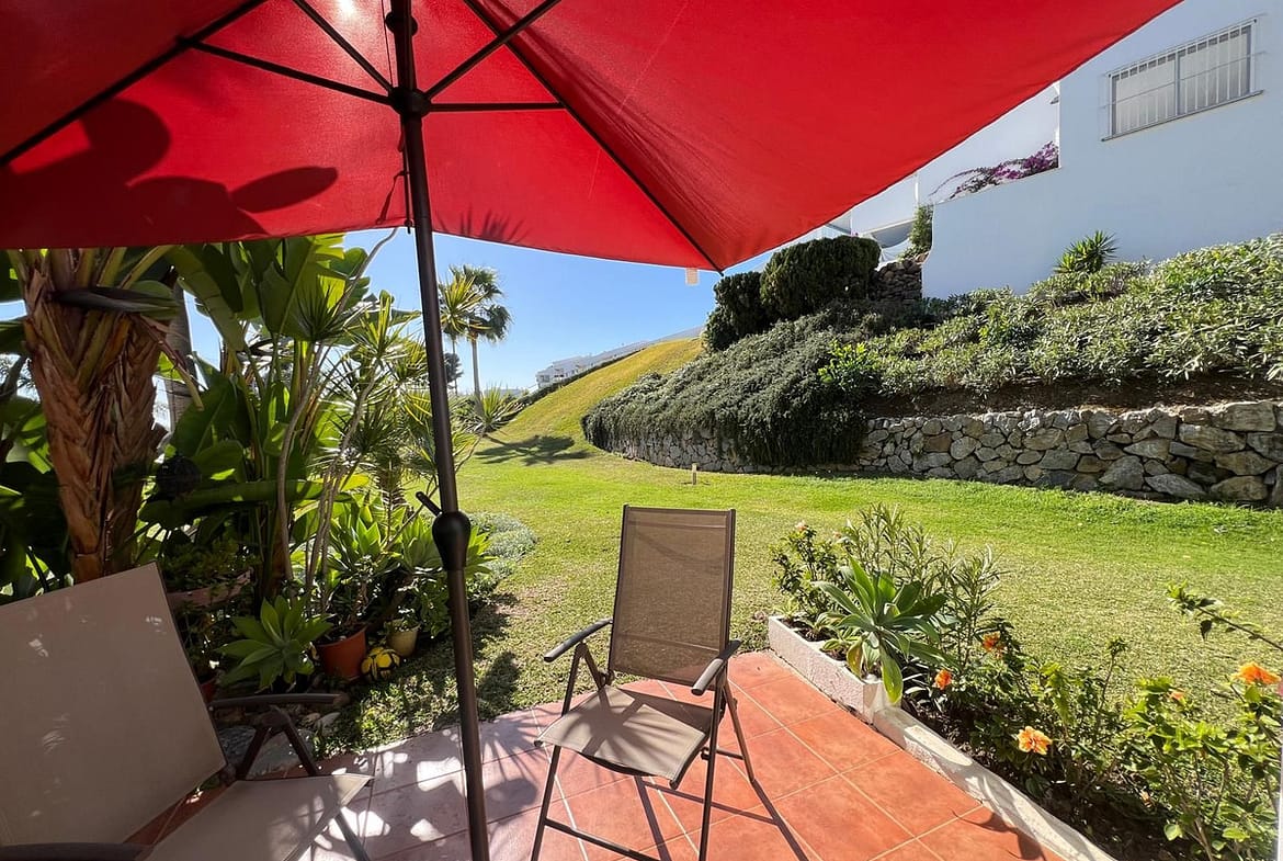 Large terrace with garden, south facing that also overlooks another huge community garden and pool, where you can enjoy the good Marbelli weather.