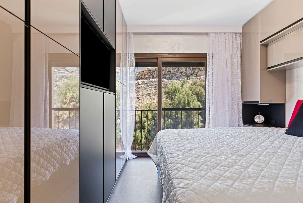 The custom-made kitchen, crafted by a local carpenter, blends seamlessly with the integrated furniture. All plumbing and electrical systems are brand new, and the entire property features underfloor heating with room-by-room control. You'll also find Airzone air conditioning by zones, Gessi taps, and an energy-efficient aerothermal system.