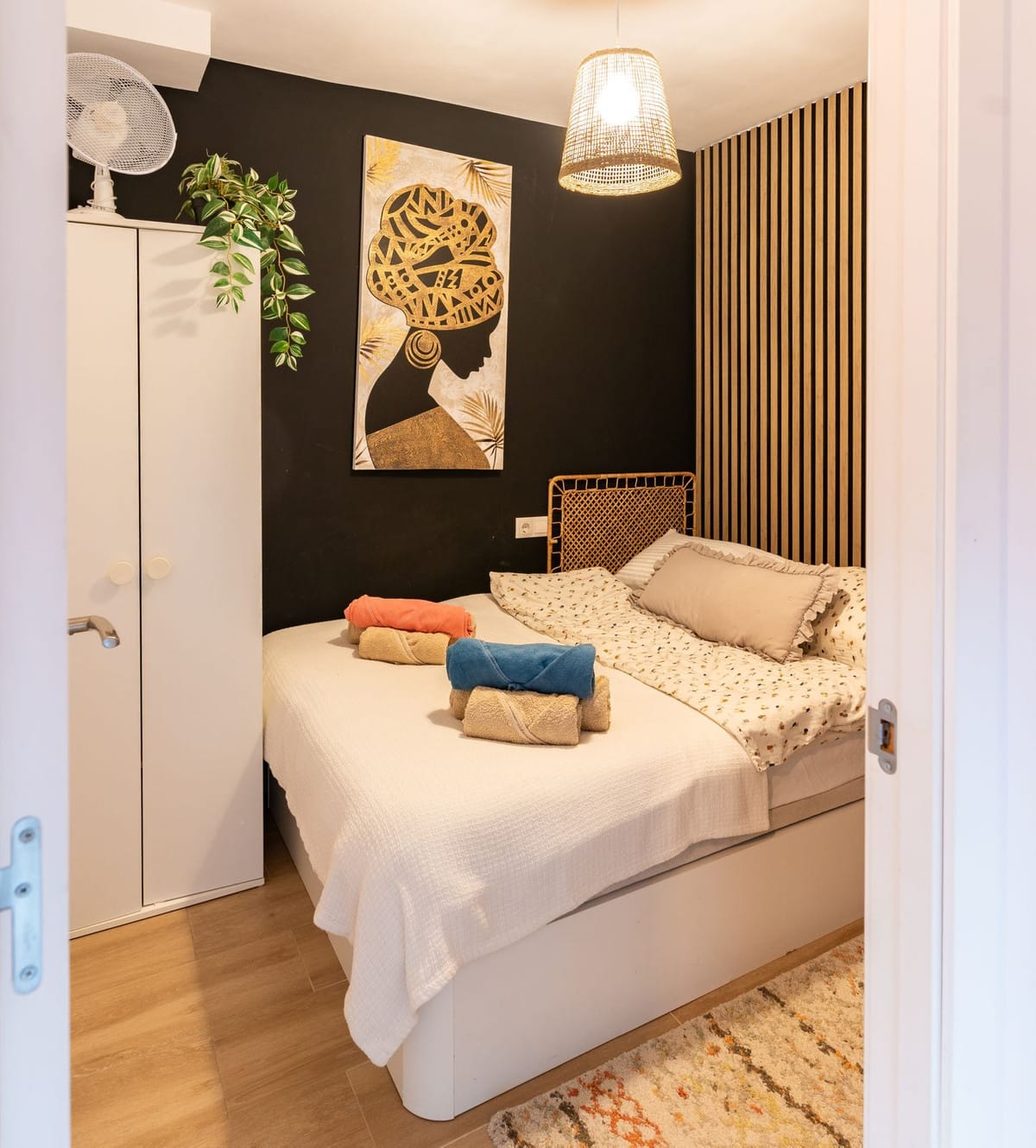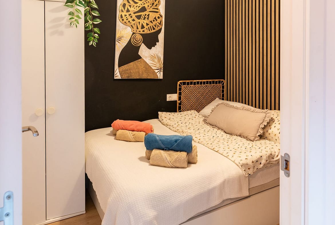 Bright bedroom with a double bed