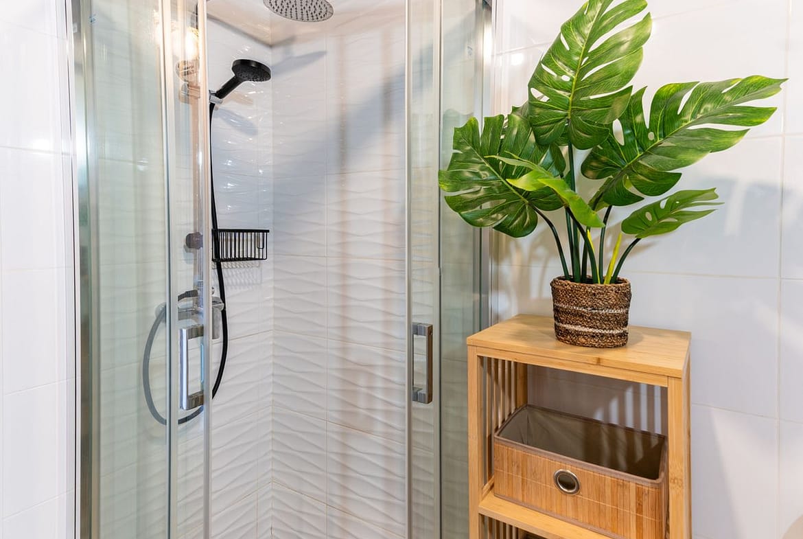Modern bathroom with walk-in shower