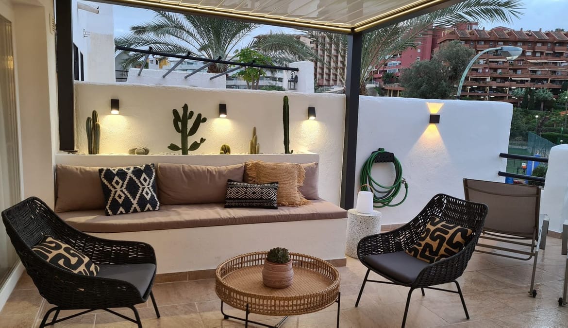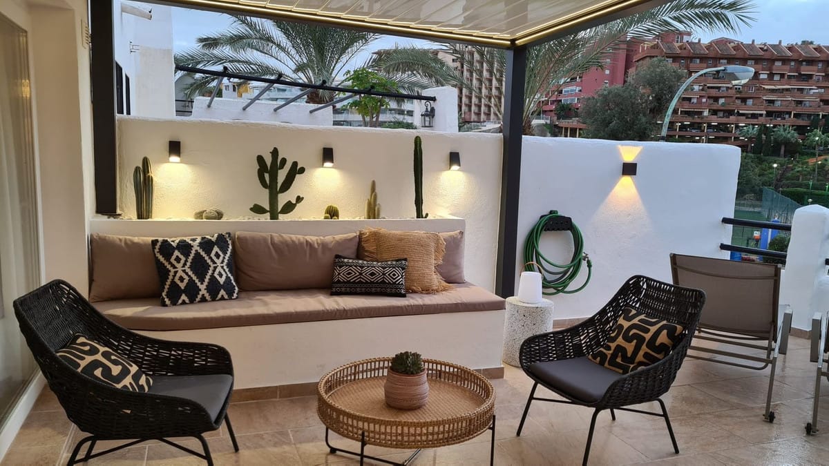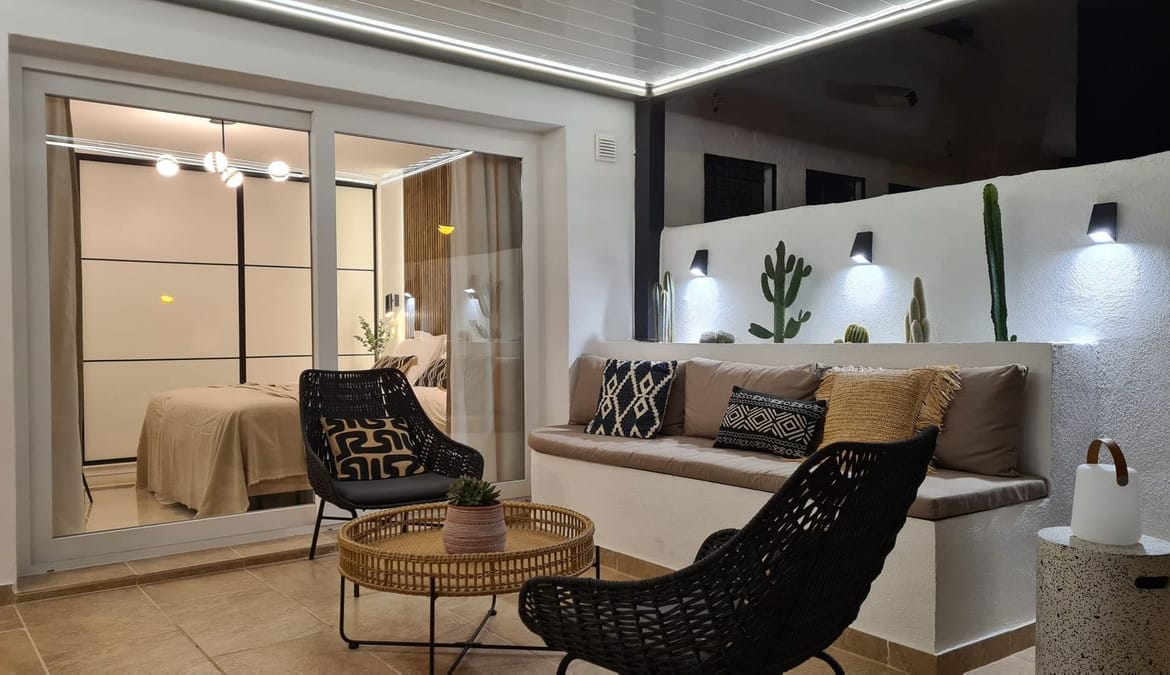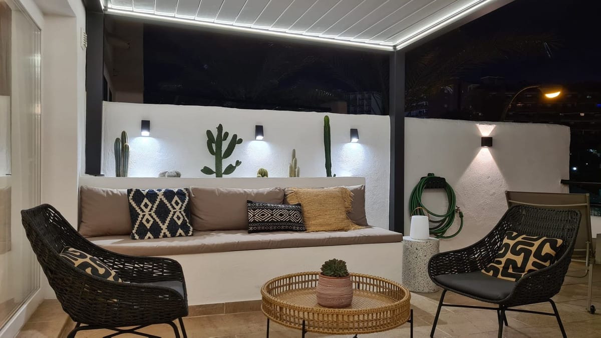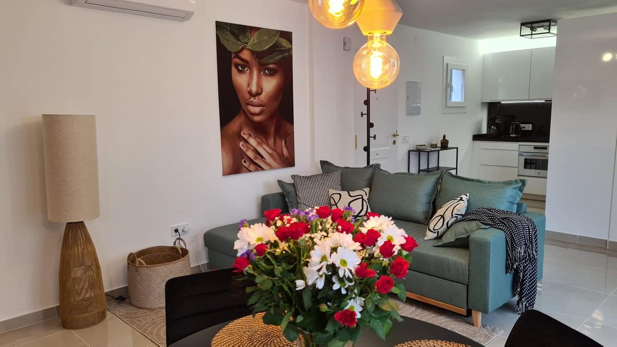 This bright apartment has a functional and practical living-dining room with split air conditioning, with access to a private terrace, where you can enjoy panoramic views of the sea and the pool.