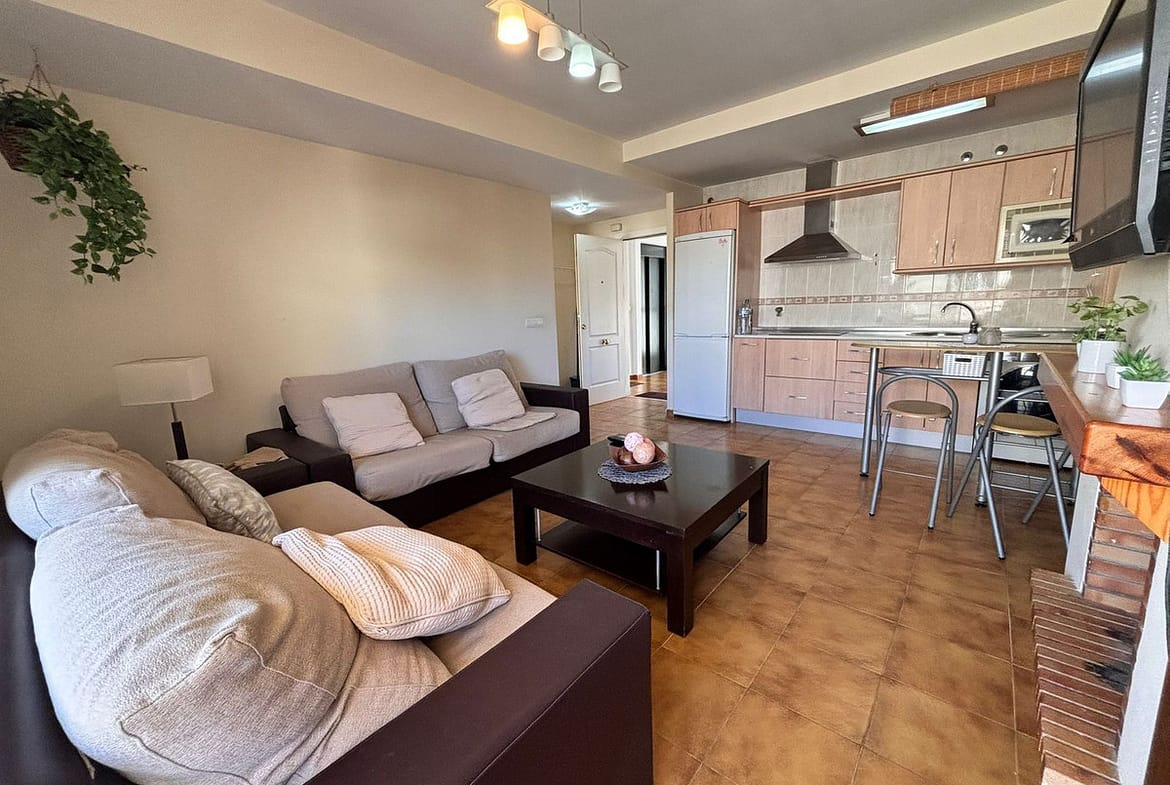 Discover this charming and bright apartment, ready to move into, located in a private residential complex with excellent amenities. The property features a spacious and very luminous living–dining area with large windows, as well as a fully equipped open-plan kitchen.