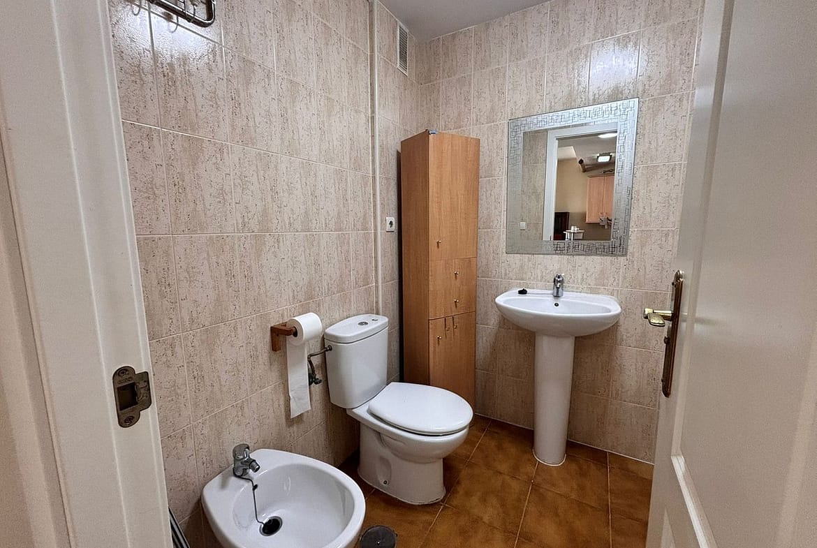 The apartment offers a spacious and bright bedroom and a full bathroom with a shower. Its layout is comfortable and functional, making the most of every square meter.