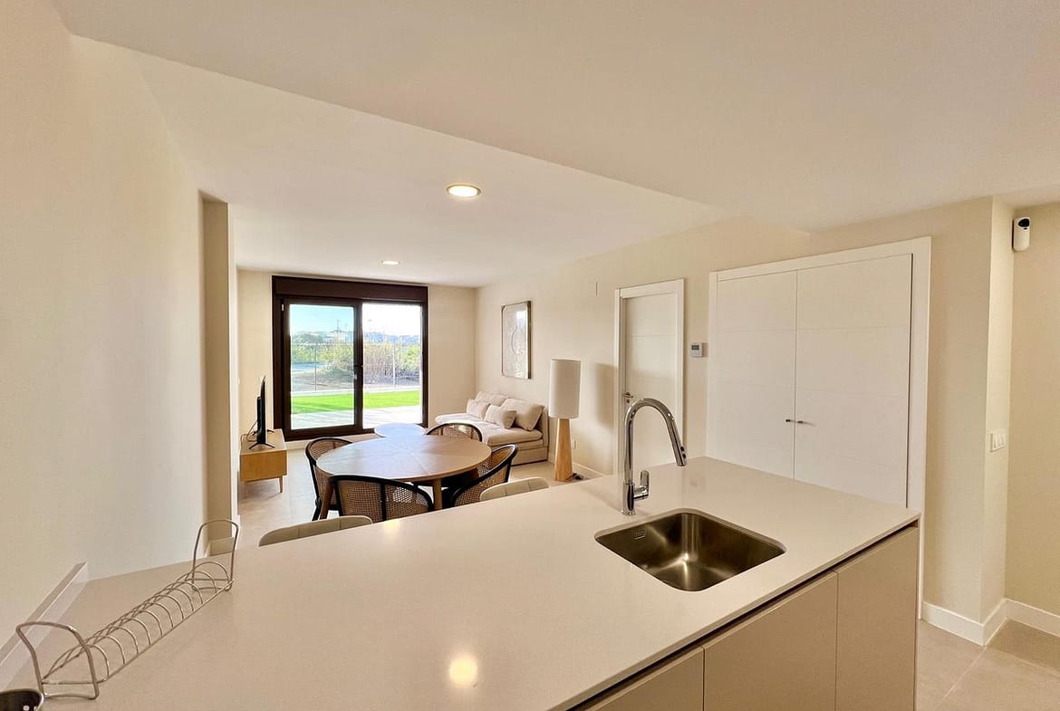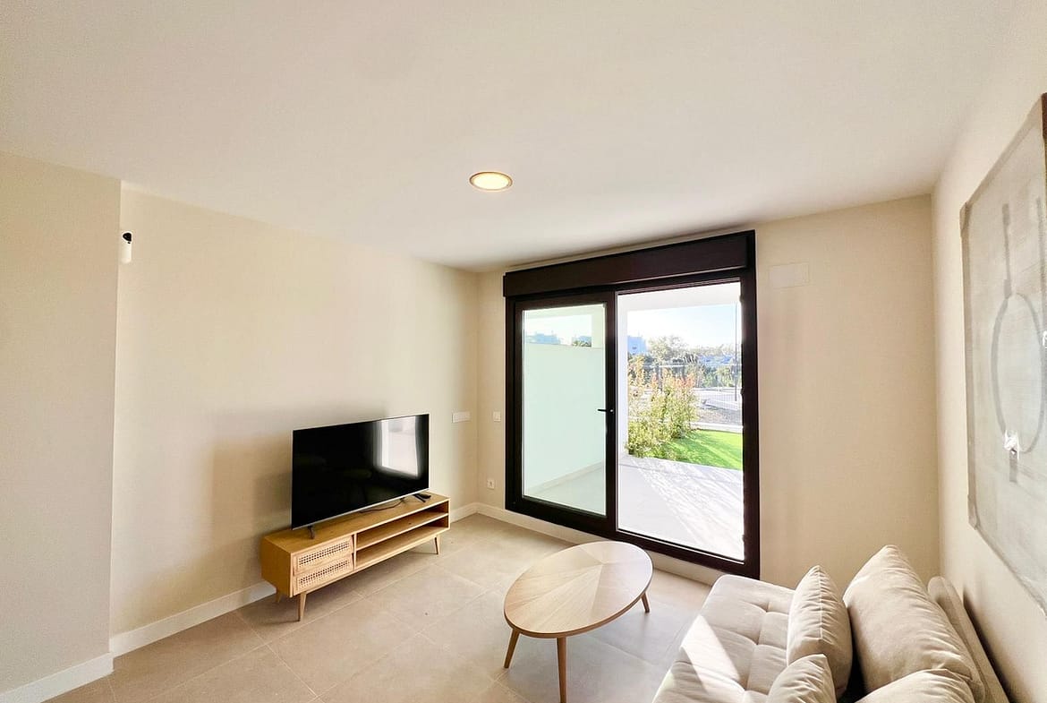 This stunning brand-new apartment, located in the beautiful Bayside Homes residence, perfectly combines comfort, modern design and a prime location. It comprises one bedroom, one bathroom, a fully equipped kitchen and a spacious terrace with private garden, enjoying a south-facing orientation, ideal for enjoying the sun all day long. The property is delivered fully furnished, featuring generous and bright interior spaces, and benefits from direct access to a private underground parking space located just below the apartment. The communal areas of the residence offer a swimming pool, a co-working space and a fully equipped gym. Bayside Homes is ideally located just 600 metres from the beach, only 5 minutes by car from the centre of Estepona and 20 minutes from Puerto Banús and Marbella, with easy access to all amenities, leisure areas and key destinations along the Costa del Sol. An exceptional opportunity for a permanent residence.