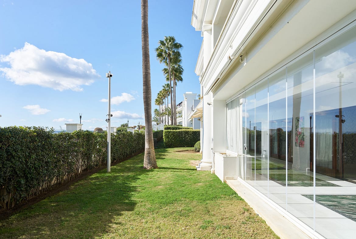Situated in the prestigious Doncella Beach area, Estepona, this exquisite ground floor apartment offers an unparalleled blend of luxury and convenience. Boasting a prime front-line beach location, the property provides direct access to the sea and is within close proximity to Estepona’s vibrant town centre, renowned golf courses, the marina, and an array of shops, schools, and restaurants. The apartment is part of a gated community that ensures privacy and security with 24-hour surveillance.