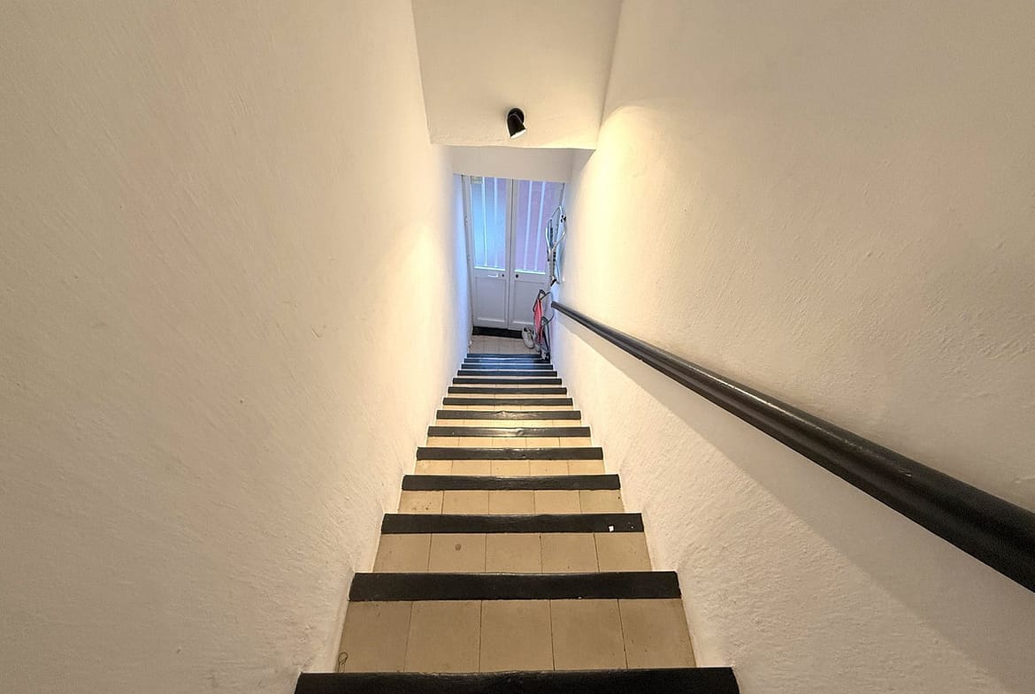 The property has a feeling of a house because you enter your own front door at street level and walk up a flight of steps to the living accommodation where you will find a bright and sunny West facing property consisting of 1 bedroom, 1 bathroom with an open plan living room and a nice modern kitchen. The bedroom has a Juliette balcony which is West facing and overlooks a beautiful quiet street below. The bedroom is bright and has lovely original ceramic flooring and has a large walk in wardrobe.