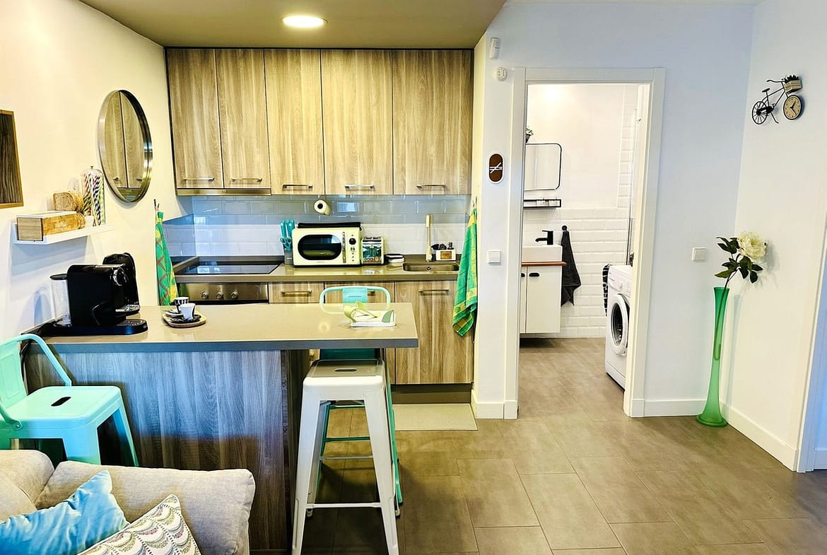 Compact yet highly functional, the apartment features a private entrance, renovated interiors and a comfortable layout suitable for professionals, couples, digital nomads or families with a baby (travel crib, high chair and potty included).