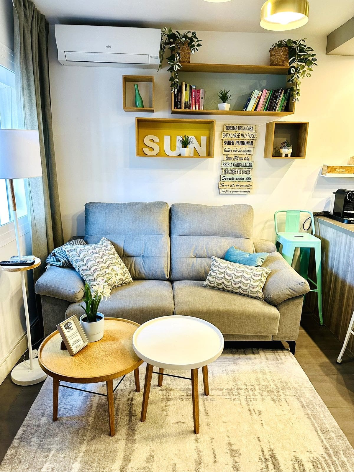 Air conditioning (hot/cold) in living room and bedroom