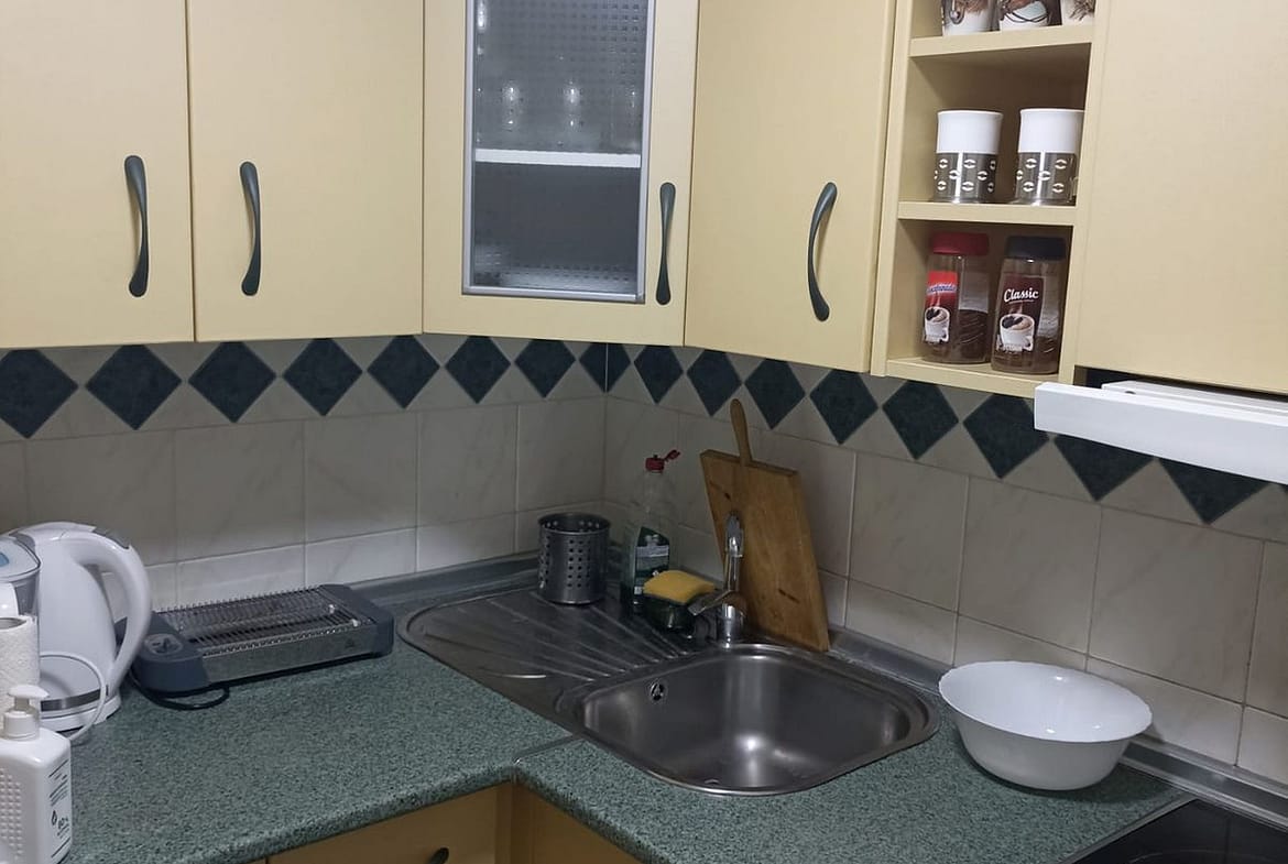 The bright living and dining room opens seamlessly onto the outdoors, creating an ideal atmosphere for relaxing or entertaining. The separate, fully equipped kitchen includes a convenient laundry area and a small additional terrace. The bedroom offers exceptional comfort with its built-in wardrobe and a window that lets in plenty of natural light. Shared parking is also available.