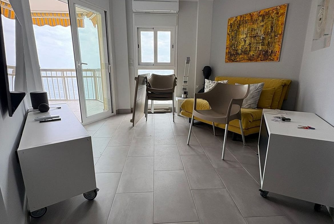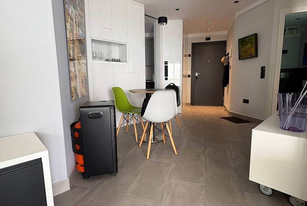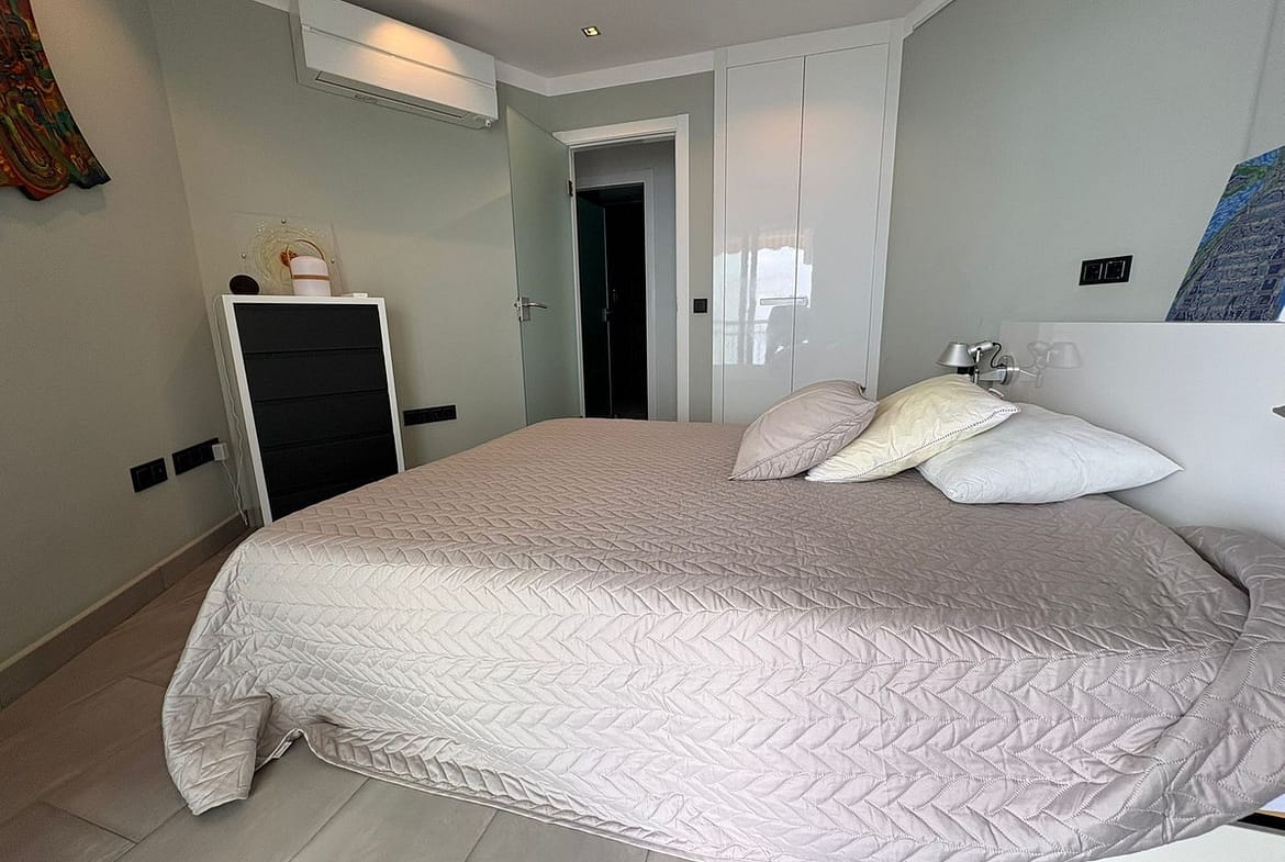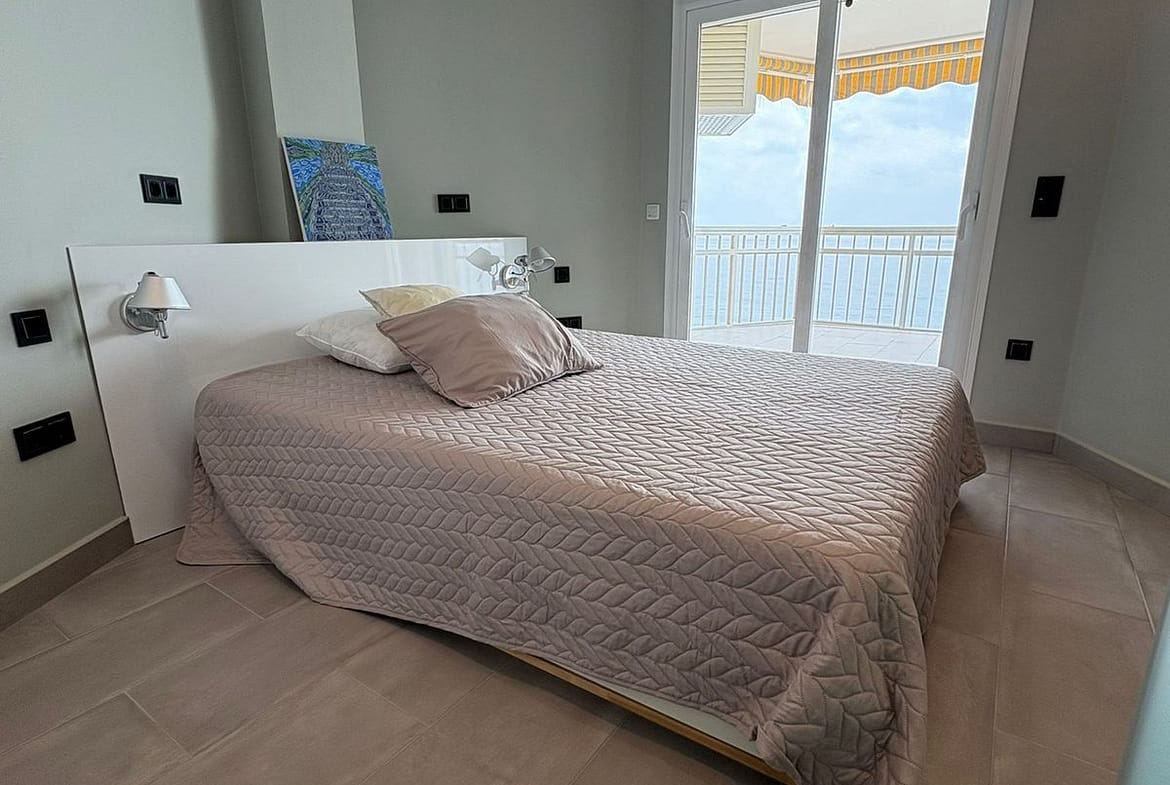 Dining room with the living room next to it, sliding door to the terrace. Spacious bedroom with sliding door to the terrace. The best materials have been used, both for the kitchen cabinets, appliances, worktop and lighting. New floors throughout the flat, top quality sliding doors that are heat and cold resistant. Impecable seaviews 180 degrees.