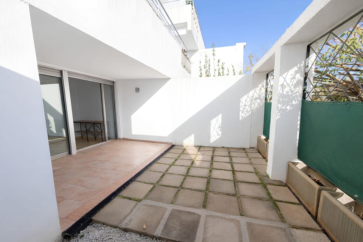 This spacious, larger-than-usual one-bedroom ground-floor corner apartment combines comfort, practicality, and a superb location within a well-established urbanisation just five minutes by car from La Cala de Mijas.