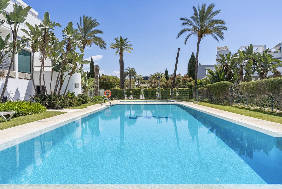 This spacious, larger-than-usual one-bedroom ground-floor corner apartment combines comfort, practicality, and a superb location within a well-established urbanisation just five minutes by car from La Cala de Mijas.