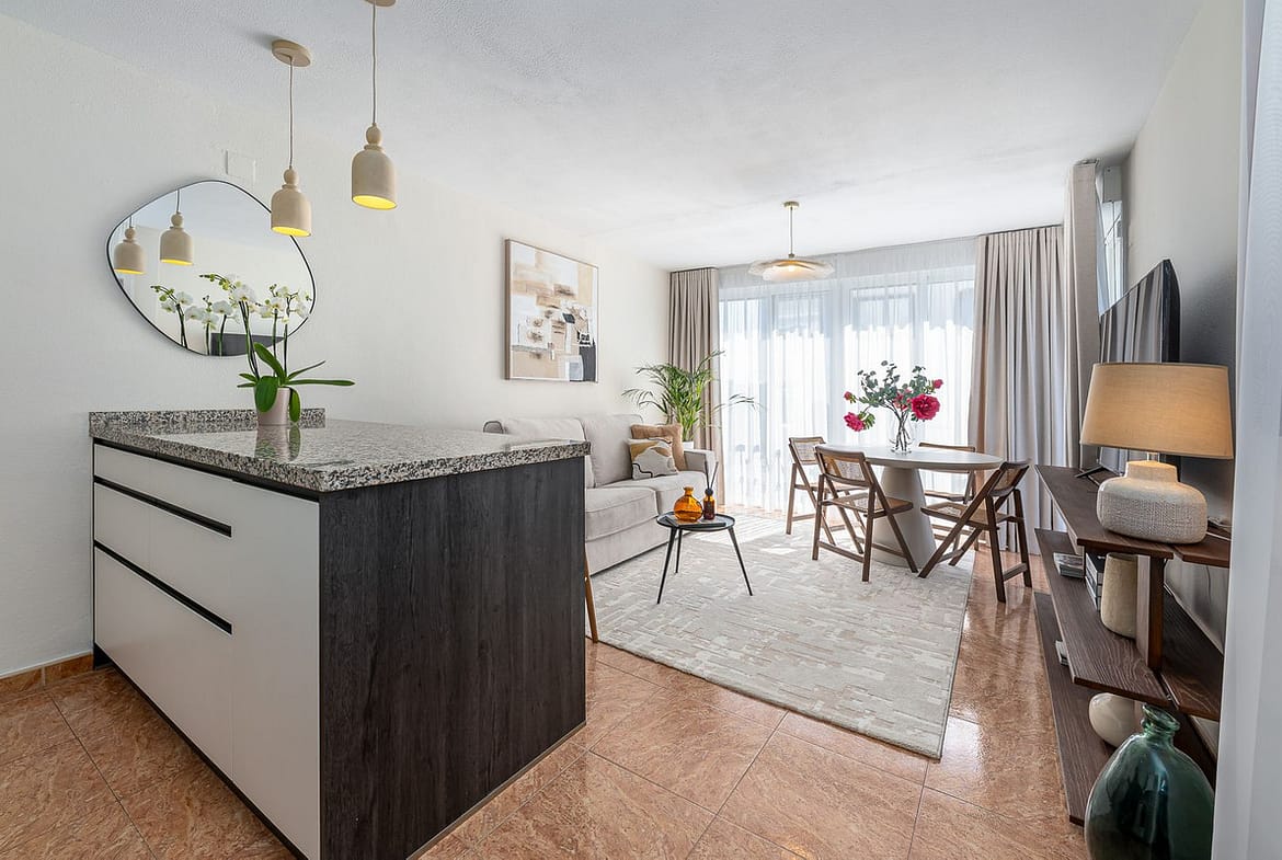 Filled with natural light throughout the day, this bright and inviting home offers a warm and cosy atmosphere, making it a place where you instantly feel at ease. The apartment has been thoughtfully updated and carefully styled, combining modern touches with a comfortable, homely feel, enhanced by carefully selected high-quality touches throughout — perfect for both sunny days and quieter moments at home.