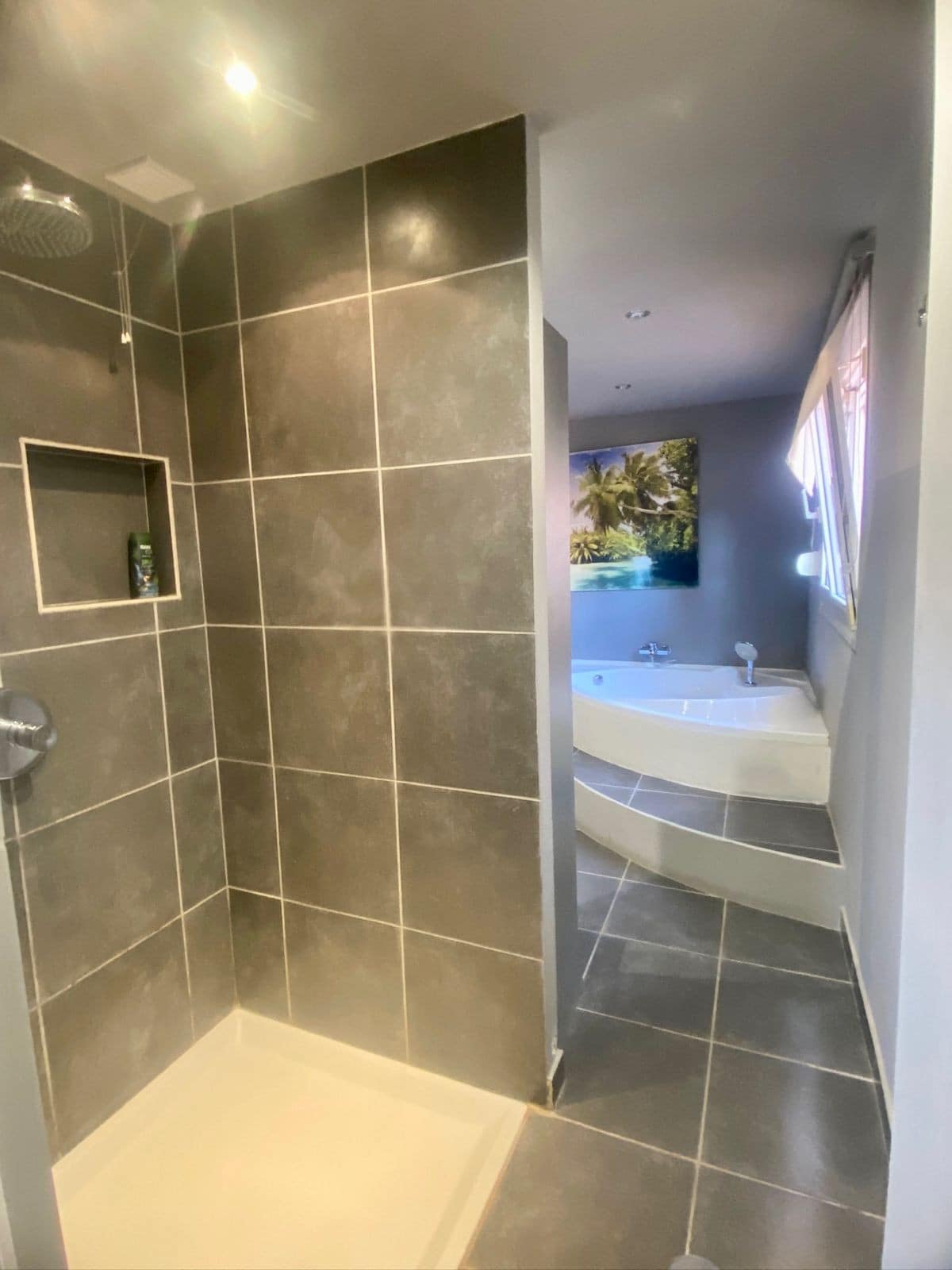 • A dream bathroom: spacious and bright, featuring a corner bathtub perfect for relaxation and a separate shower for everyday convenience.