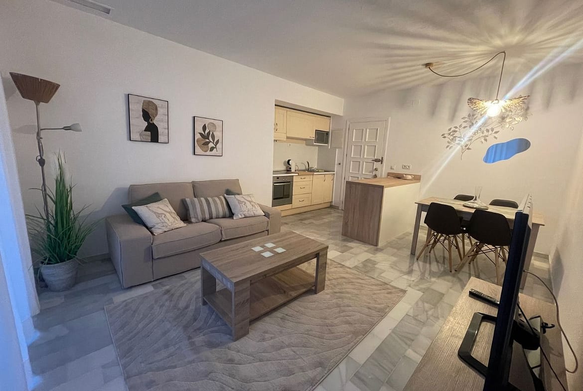 Spanning a bright and inviting layout, the apartment includes a spacious living-dining room with a convenient kitchenette, a generous master bedroom with an en-suite bathroom featuring a large shower, and a sunny terrace boasting beautiful garden views – ideal for outdoor relaxation or al fresco moments. Maintained in excellent condition, it's a unique opportunity for luxurious living or a savvy investment in one of the Costa del Sol's most exclusive enclaves.