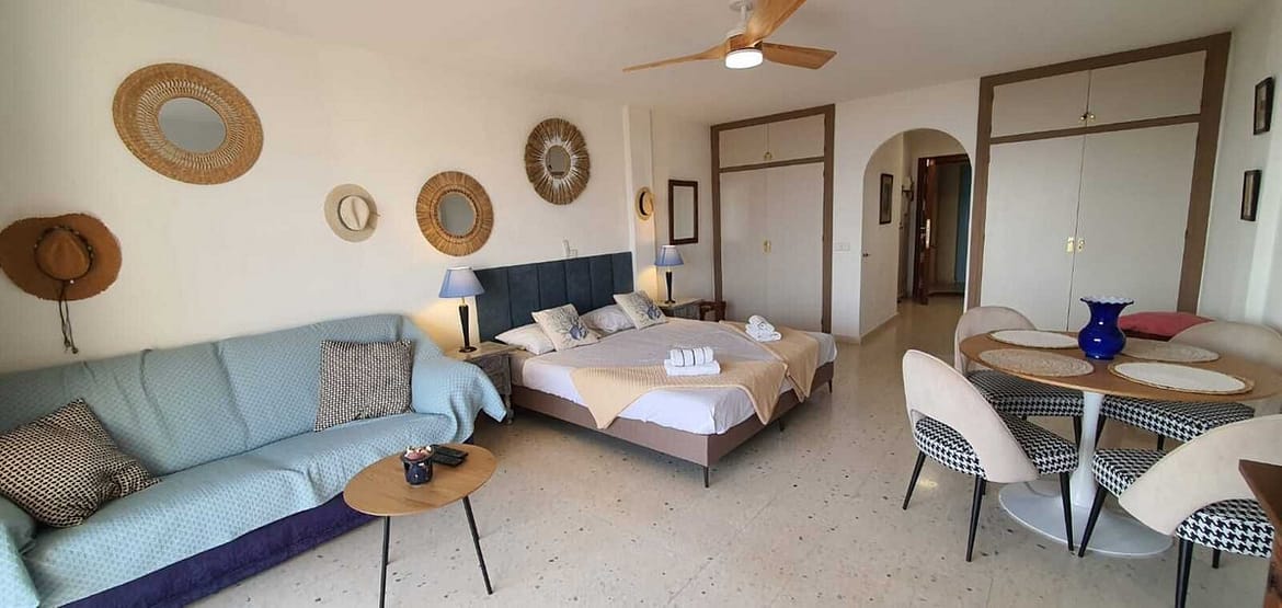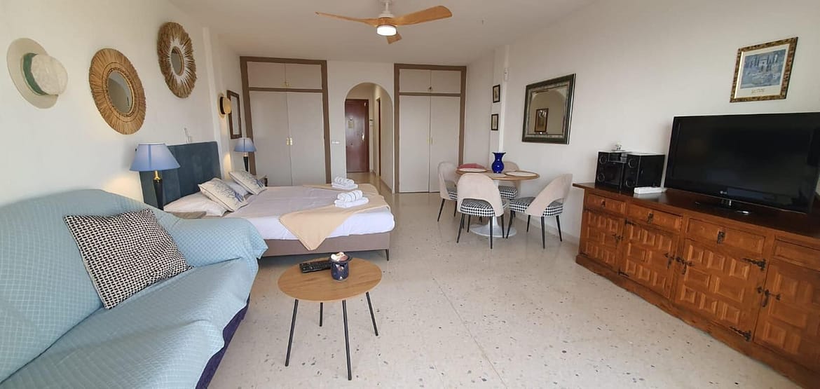 There are definitely not many places like this – this atmospheric apartment (studio) is located 400 m to the wide and sandy golden beach and has a beautiful terrace with apanoramic view of the sea and the bay of Marbella and Africa – and all this within your