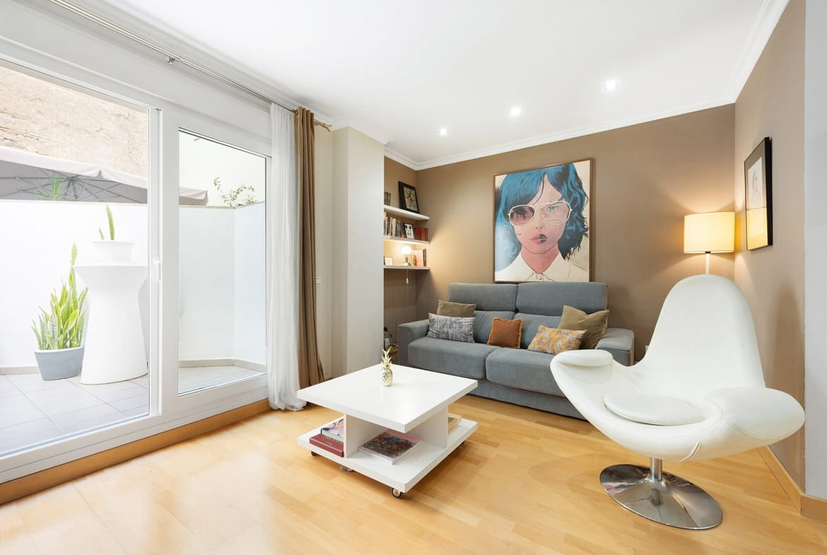 The property boasts a constructed area of 74 m², notable for its functional layout and private patio, accessible directly from the living room, providing a private outdoor space in the heart of the historic district.