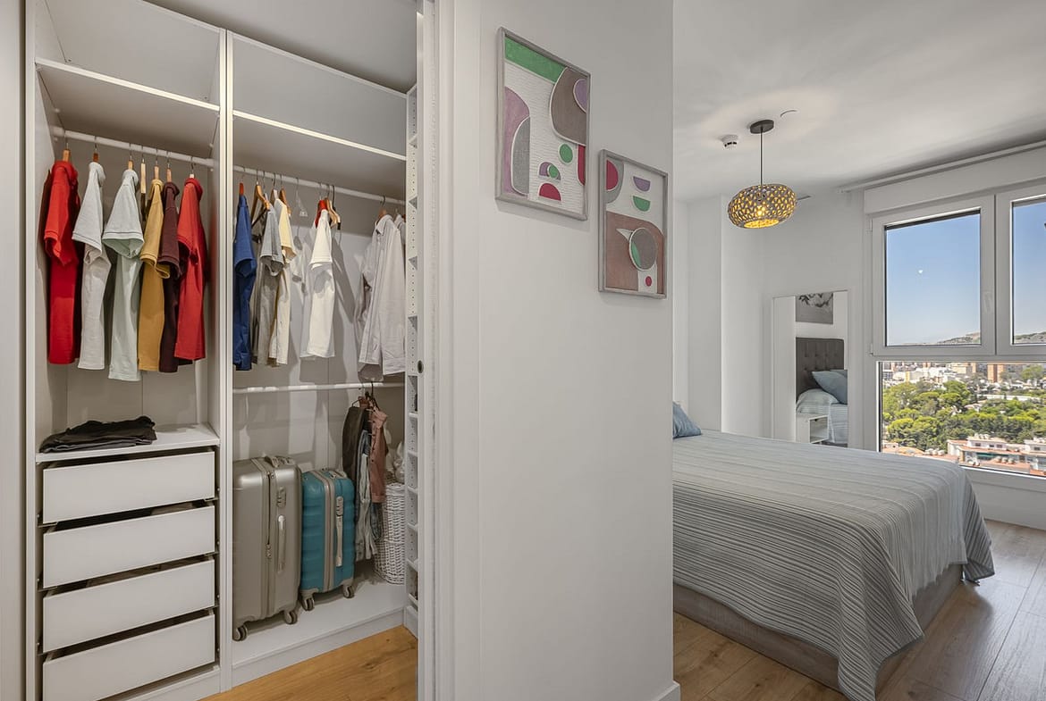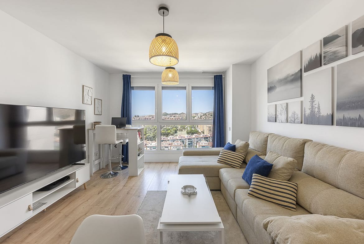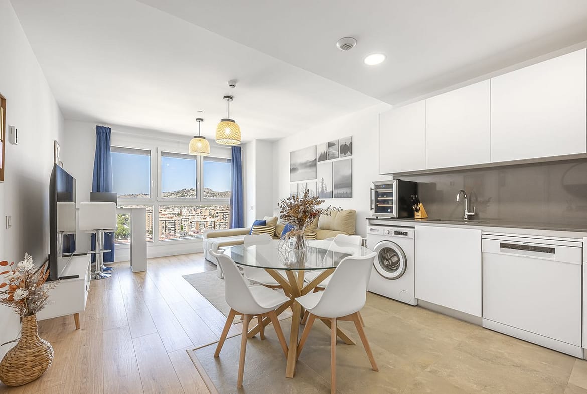 This exclusive flat is located in one of Malaga's most prestigious high-end buildings, Torre Martiricos. Situated on the 17th floor and facing west, it offers stunning views of the city and is a home full of light and style. Its PVC windows with electric blinds provide comfort and modernity. The kitchen, integrated into the bright living room, allows you to enjoy panoramic views of Malaga while preparing your meals.