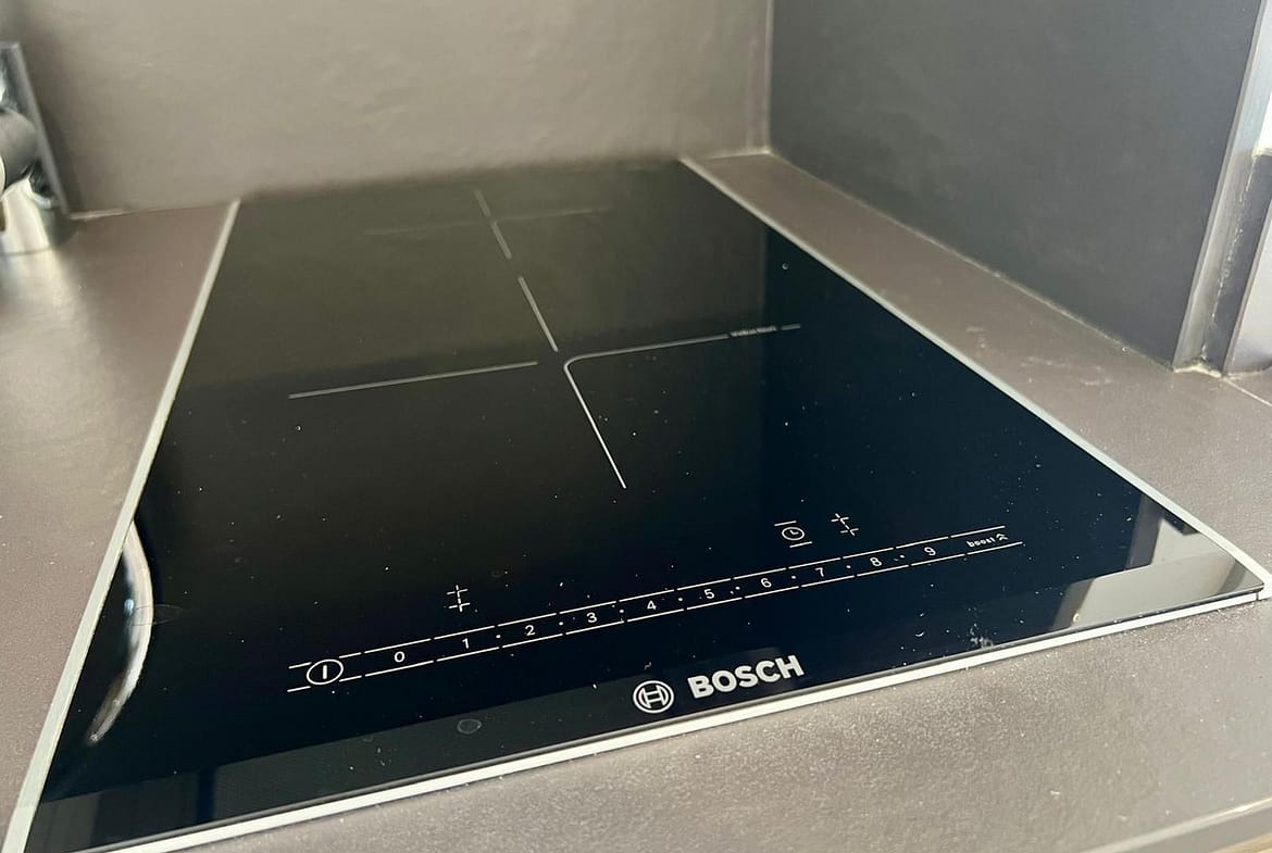 The open-plan layout includes a bright lounge area and a sleek kitchen, perfect for comfortable living and entertaining. The large windows fill the space with natural light, enhancing the airy ambiance.
