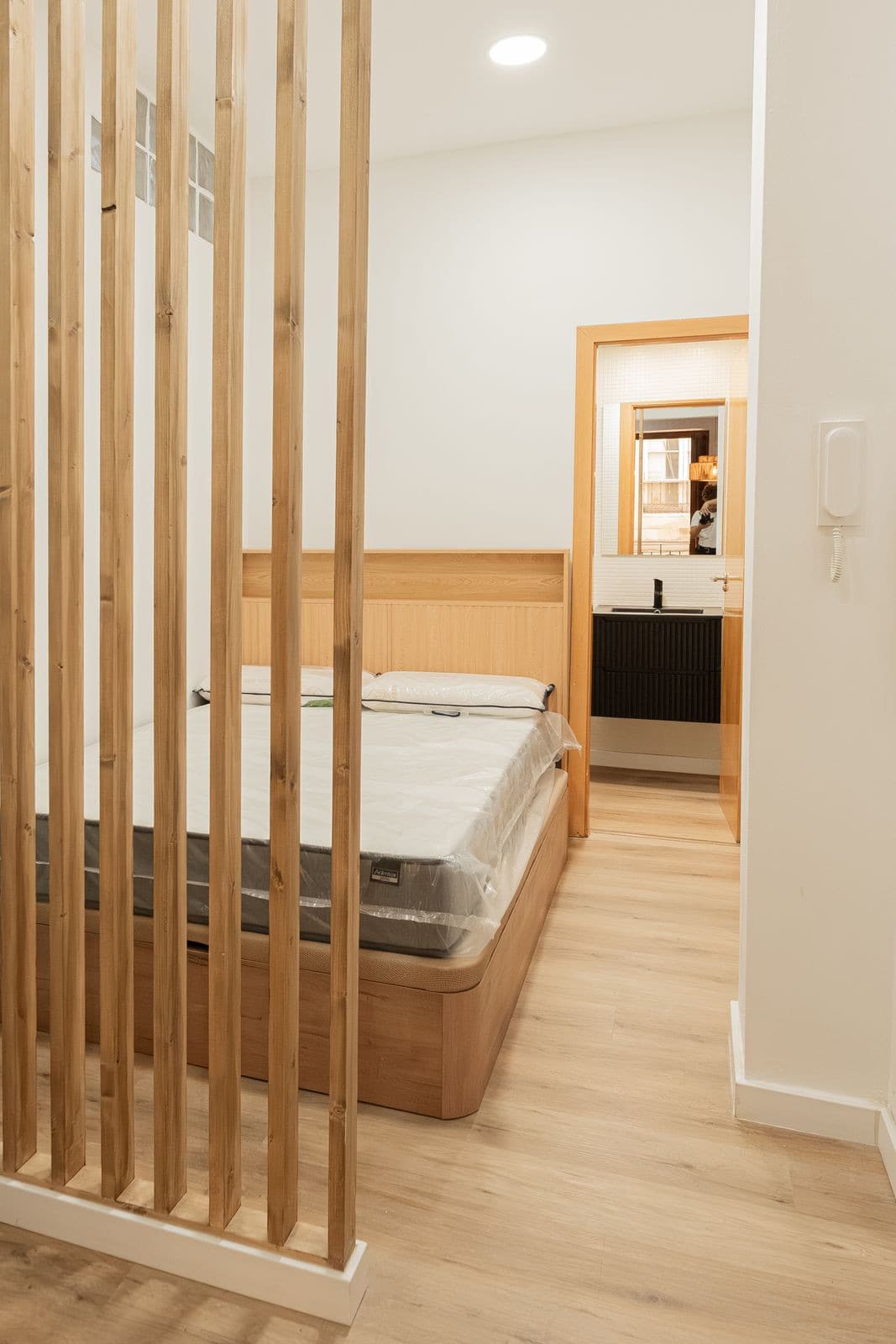 Located in a fully renovated 1880's building, the apartment has a built area of 44 m². Originally featuring one bedroom, it has now been converted into a loft-style layout with an integrated kitchen and living area, offering plenty of natural light through its large window.