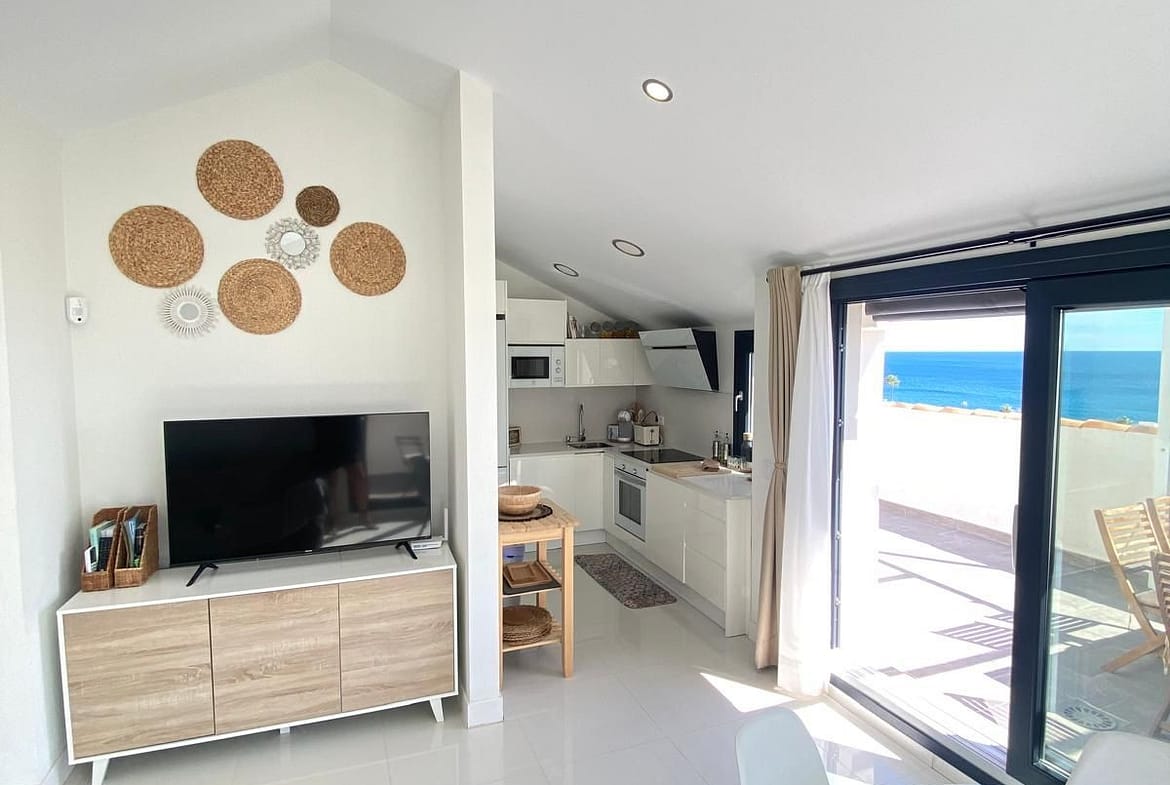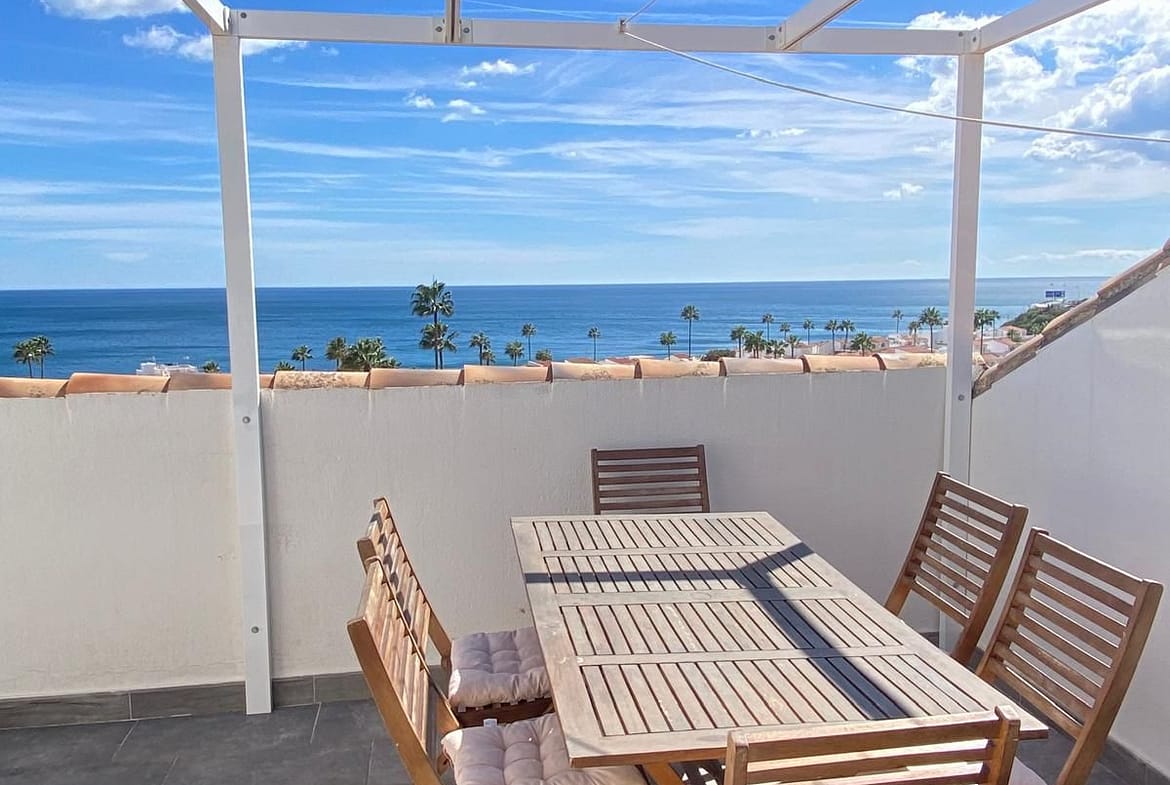 This modern bright property is perfect to enjoy your own special holidays as well as giving you a favorable investment opportunity. It has a high occupation for holiday rentals due to it's great location, which is within walking distance to the beautiful sand beaches and all local amenities of Manilva. This one bedroom, fully furnished penthouse gives the option to have peaceful break for two, or due to it's spacious living area with sofa bed, enables an extra two people to stay so you can enjoy with friends or children as well. The living area is connected to a fully equipped kitchen complete with fridge freezer, dishwasher, washing machine, oven and microwave. Sit and enjoy amazing sea views from all the terraces with the added advantage of having your own personal lift to access the penthouse. There are adults and children's pools to enjoy within a monitored and secure gated complex.