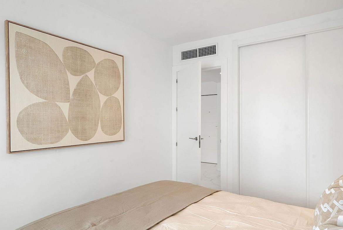 The apartment has been fully refurbished with a contemporary design, the interior features an open-plan layout that maximizes natural light and harmony. The bright living room flows into a sleek, fully equipped kitchen with integrated appliances and modern finishes. The spacious bedroom offers built-in wardrobes and a serene ambiance, while the elegant bathroom showcases high-quality fittings and a clean, modern style.