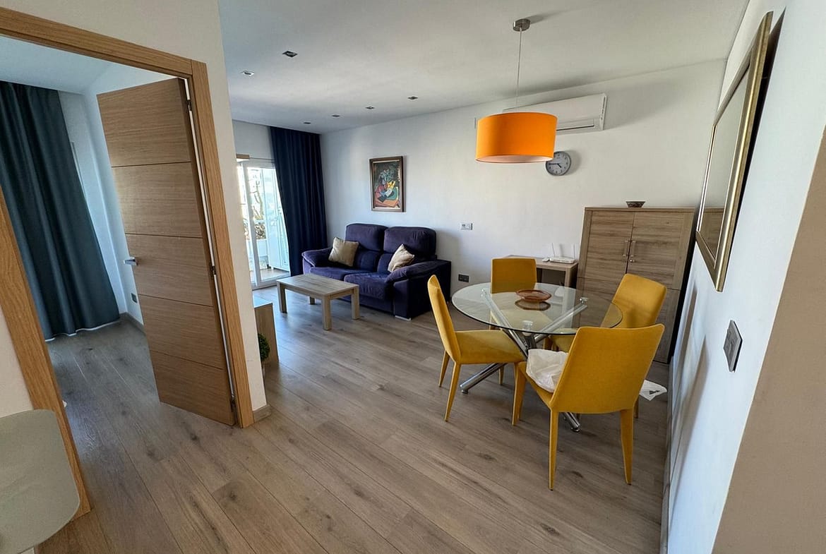 Layout and finishesThe apartment has a bright living room with direct access to the terrace, where you can enjoy panoramic views of the Mediterranean.