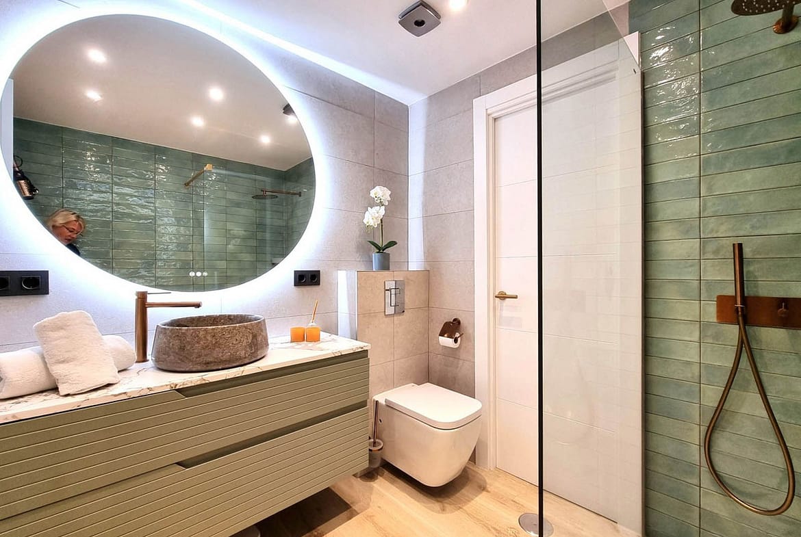 Inside, no detail has been overlooked. The apartment has been completely renovated with brand-new electrical and plumbing systems, high-performance double-glazed windows, and a stunning, custom-designed kitchen with top-of-the-line finishes and integrated appliances. The open-plan layout creates a seamless flow between the kitchen, spacious living area, and the sun-drenched private terrace, perfect for morning coffee or evening sunsets.