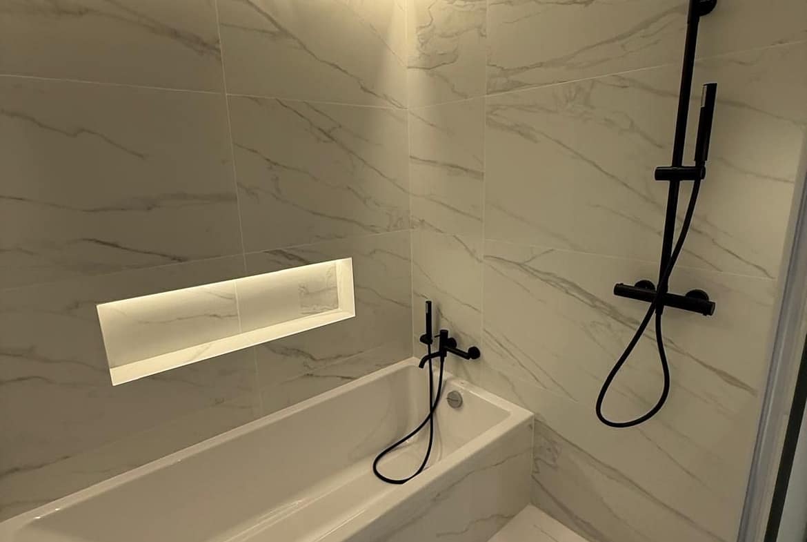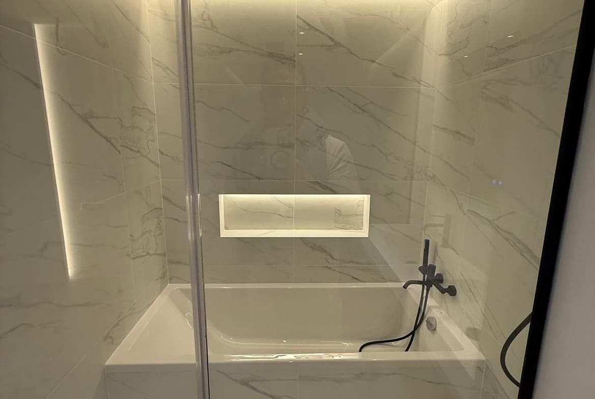 The apartment features a bright open-plan living and dining area designed to maximise light and the sense of space, seamlessly connecting with the private garden of 95 m², where pleasant views and a high level of privacy can be enjoyed. The main bedroom is spacious and bright, with a walk-in wardrobe and en-suite bathroom, ensuring comfort and independence.
