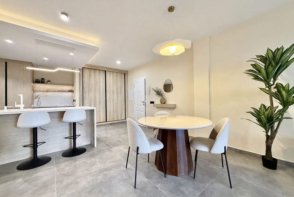 Stunning fully renovated and furnished apartment with top-quality finishes and sea views. It features a generous layout with one bedroom. There is one stylish bathroom finished with premium materials, along with a sleek open-concept kitchen designed for contemporary living. The terrace overlooks the beautifully maintained communal gardens the pool and the sea, offering the perfect setting for morning coffee or evening drinks. The apartment also includes a private underground parking space. BRAND NEW!