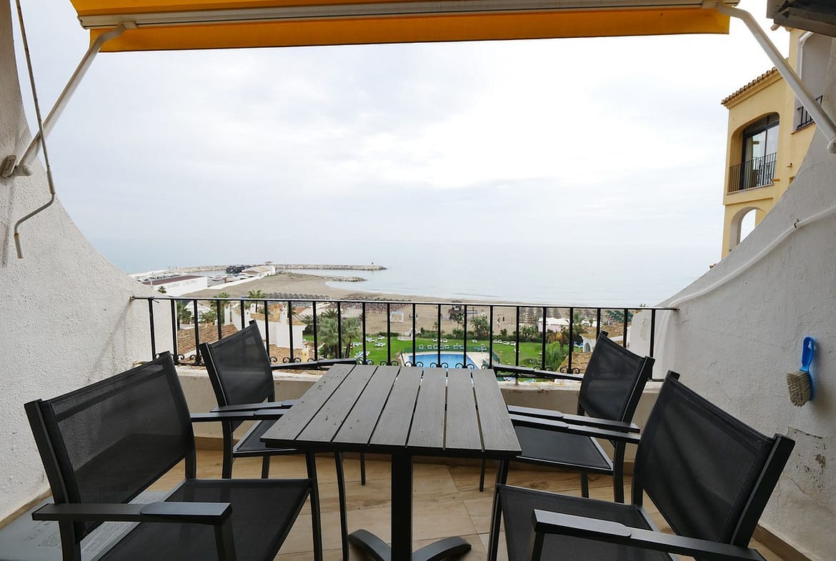 The terrace offers spectacular views of the sea, the beach, the pool, and the port.