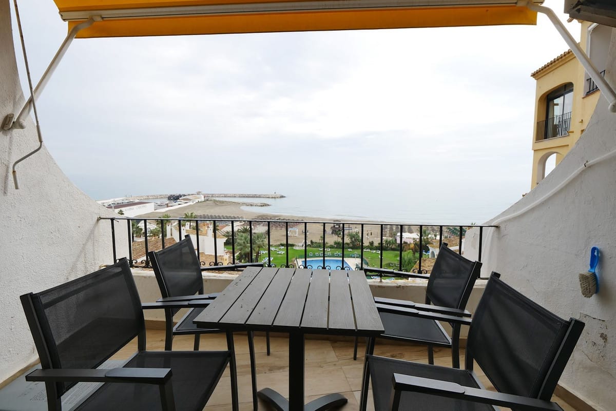 This is a great apartment with incredible frontal sea, port and pools views. Views of the Sea and the Marina. This studio apartment has been renovated to a very high standard with an open plan kitchen. Located in an elevated position offering lots of light. The complex has elevator access and a great communal pool and its right on the beach and the port allowing one quick access to restaurants and the beach.