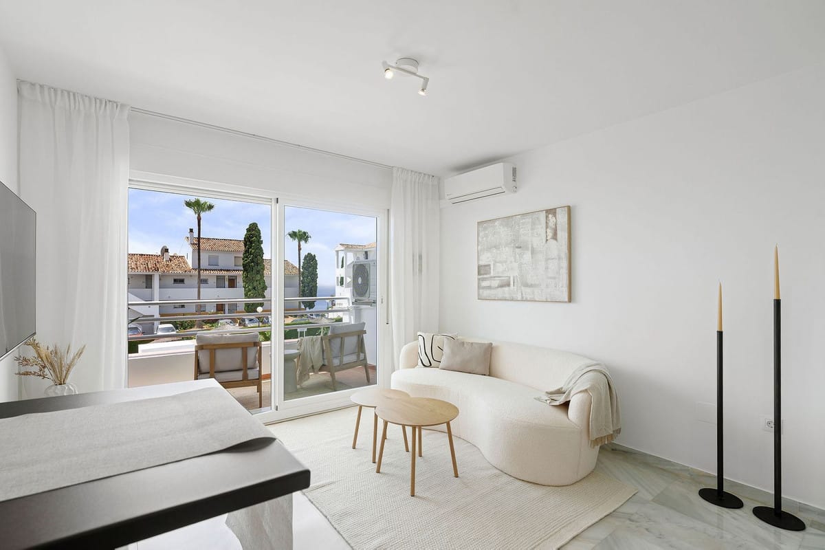 New apartment on the seasonal rental market! Charming one-bedroom apartment decorated in a Scandinavian style with stunning sea views, located in a cozy development near the beach in Riviera del Sol, Mijas Costa, Málaga.