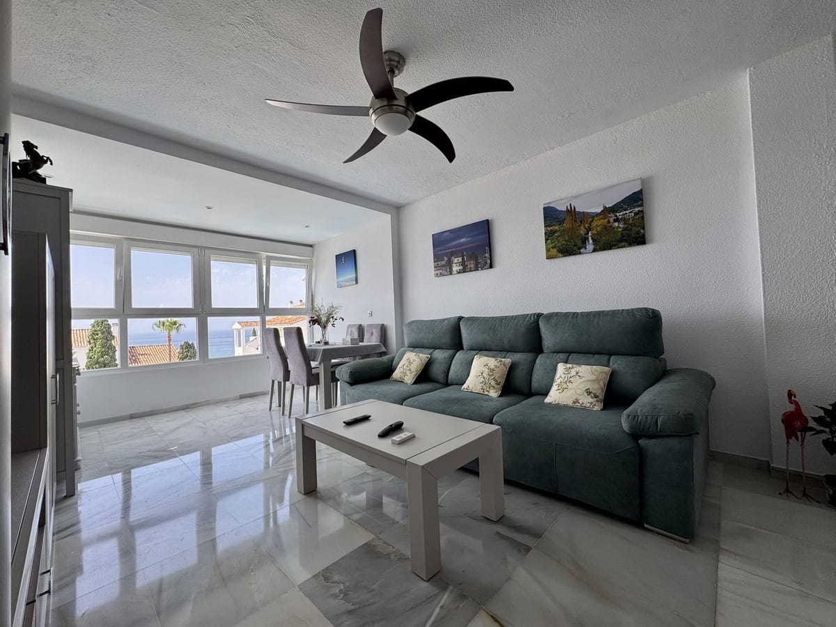On the entrance level, you’ll find a cozy living room, a fully equipped kitchen, and a modern bathroom. Upstairs, there’s a spacious bedroom with direct access to a private terrace where you can enjoy breathtaking views of the sea and the Mijas coastline.