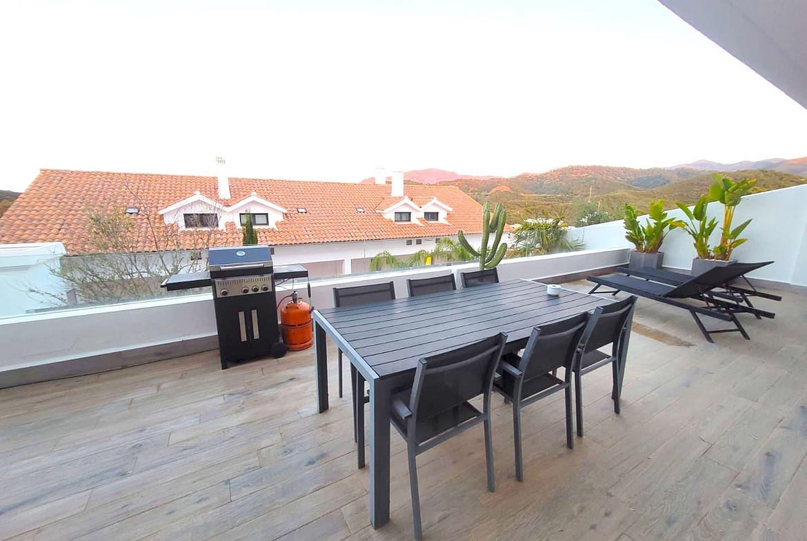 Discover this stunning apartment in the exclusive residential complex, nestled on the hills of Estepona. Enjoy absolute peace and privacy with breathtaking panoramic views over the lush green valley and the sparkling Mediterranean Sea.
