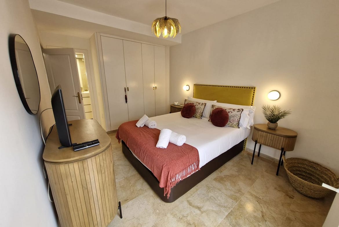 This great second floor apartment is located in a prestigious urbanization in Las Lomas del Marbella Club, with communal garden and swimming pool, just 5 minutes from the center of Marbella, Puerto Banus and the beaches. It consists of a nice living room, a west facing terrace, fully fitted kitchen and bedroom with bathroom en suite, all rooms have access to the terrace overlooking the communal areas and swimming pool of the urbanization The price includes two large subway parking spaces with elevator access and a storage room.