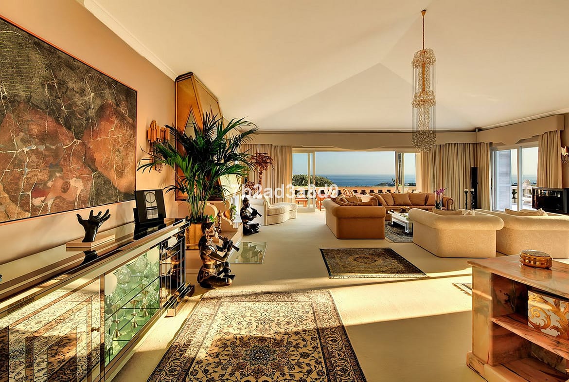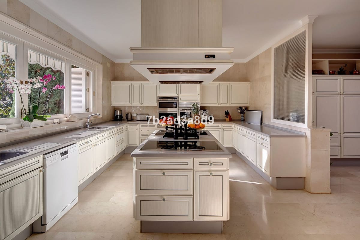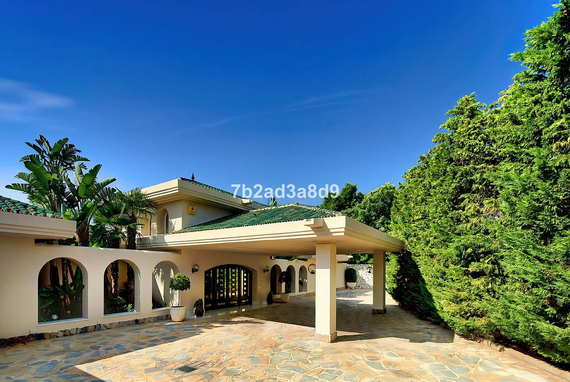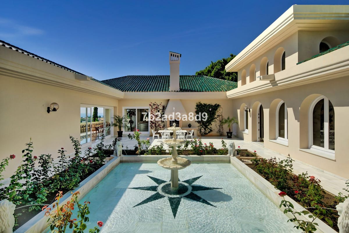 This extraordinary detached villa in Río Real, Marbella, offers a rare blend of classic Andalusian elegance and exceptional potential for modern transformation. Set atop a private hill, it enjoys uninterrupted views of the Mediterranean Sea, lush golf courses, and rolling green valleys—creating a serene yet captivating backdrop. With a vast plot of 5,775 m² and 2,600 m² of built space, the estate presents an outstanding lifestyle opportunity for discerning buyers seeking privacy, luxury, and architectural versatility.