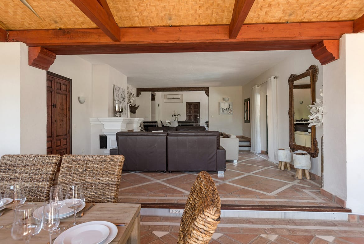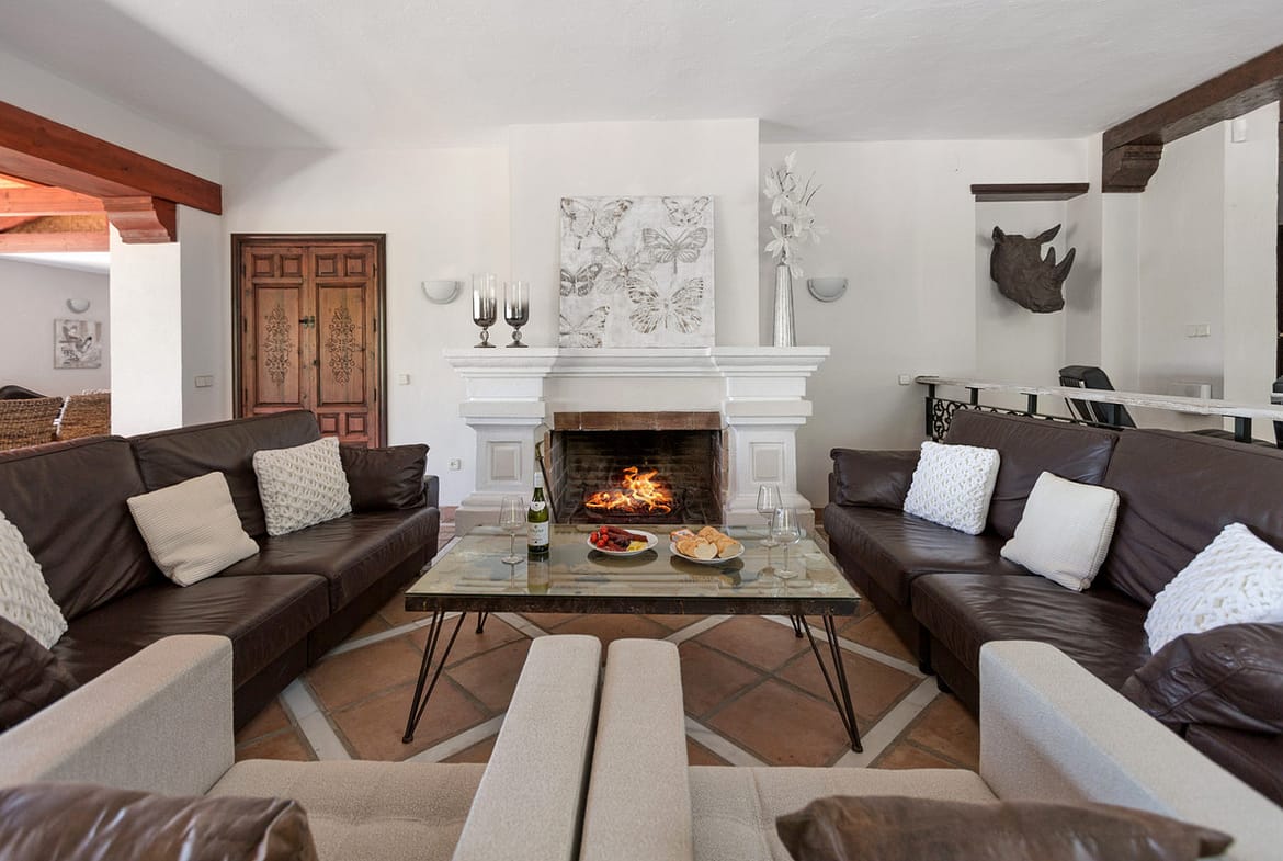 The property spans almost 1,000 sqm of beautifully designed living space surrounded by manicured gardens and serene mountain views. The interiors blend contemporary luxury with timeless Andalusian charm, featuring light-filled rooms, spacious lounges, and elegant entertaining areas throughout.