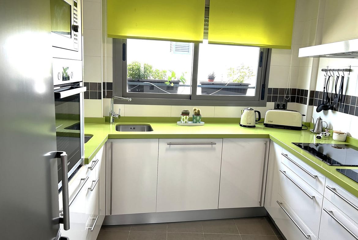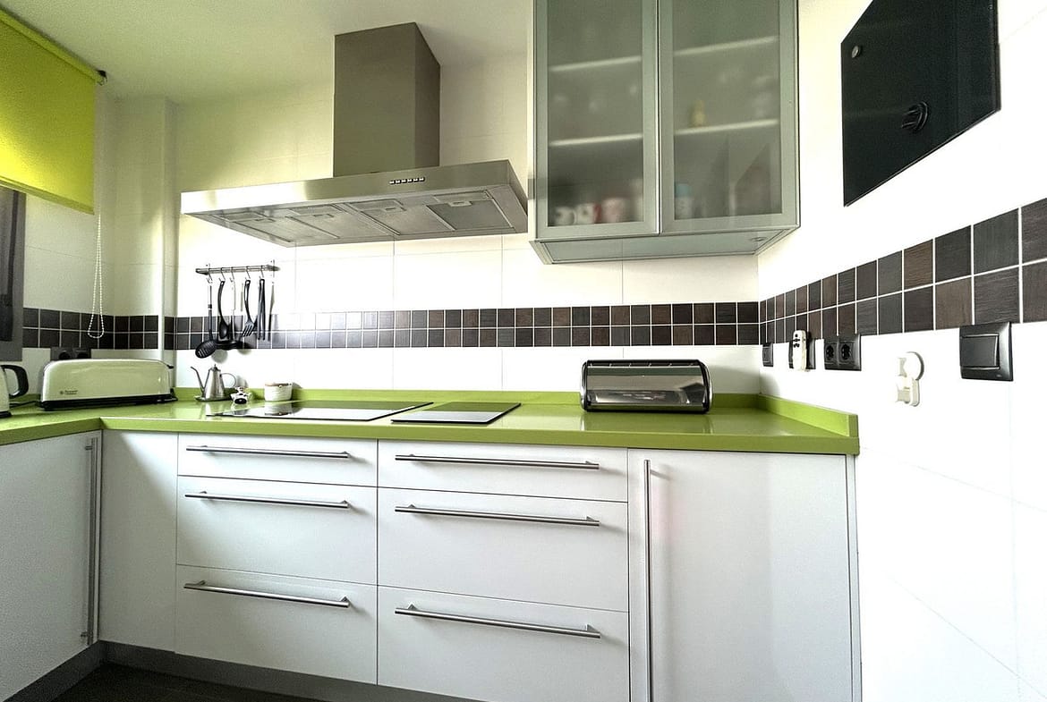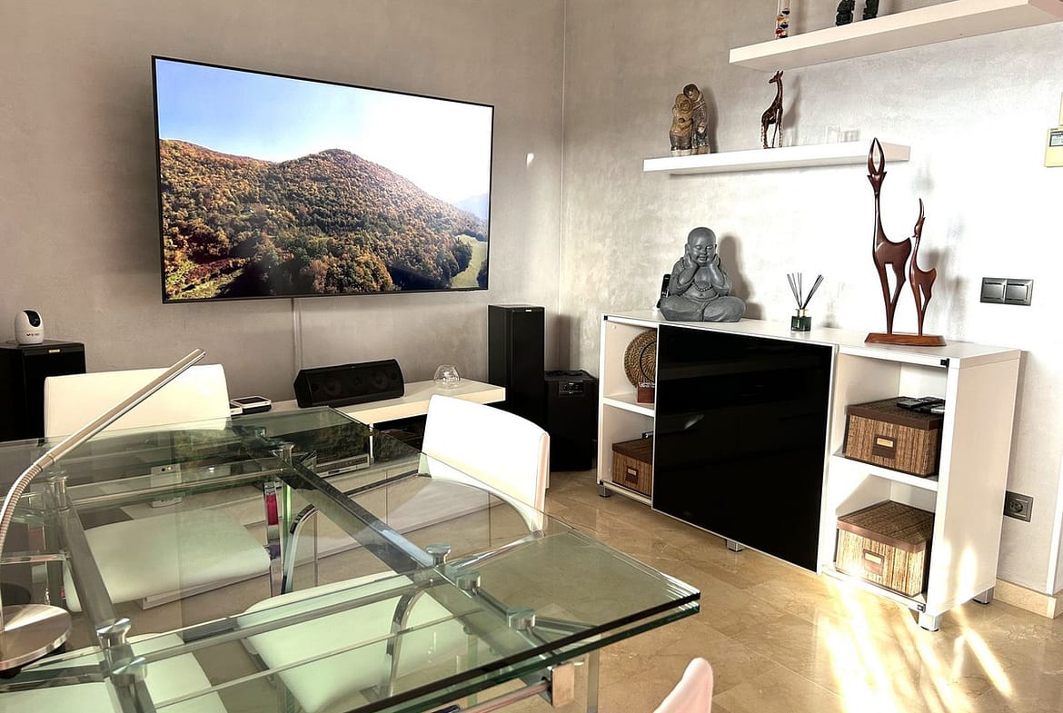 The apartment is sold furnished and comes with top-brand appliances, mainly Bosch and Balay. The built-in wardrobes are equipped with sliding shelves and various accessories, such as shoe and trouser racks.