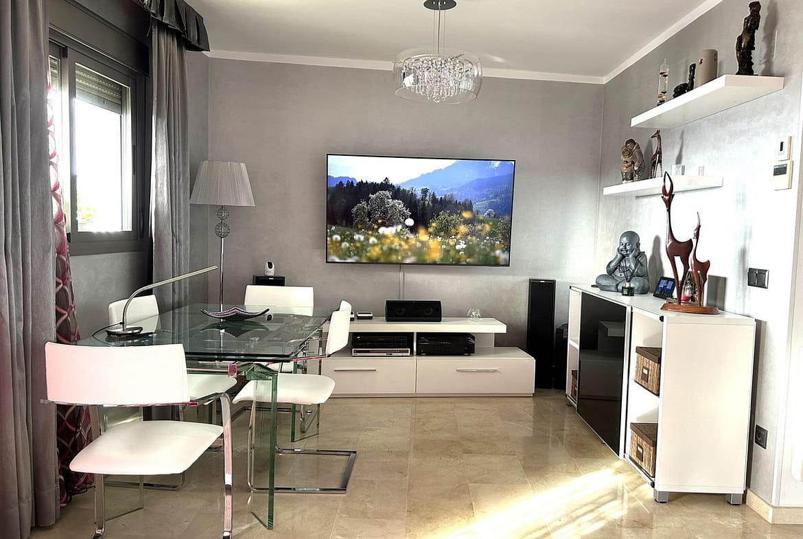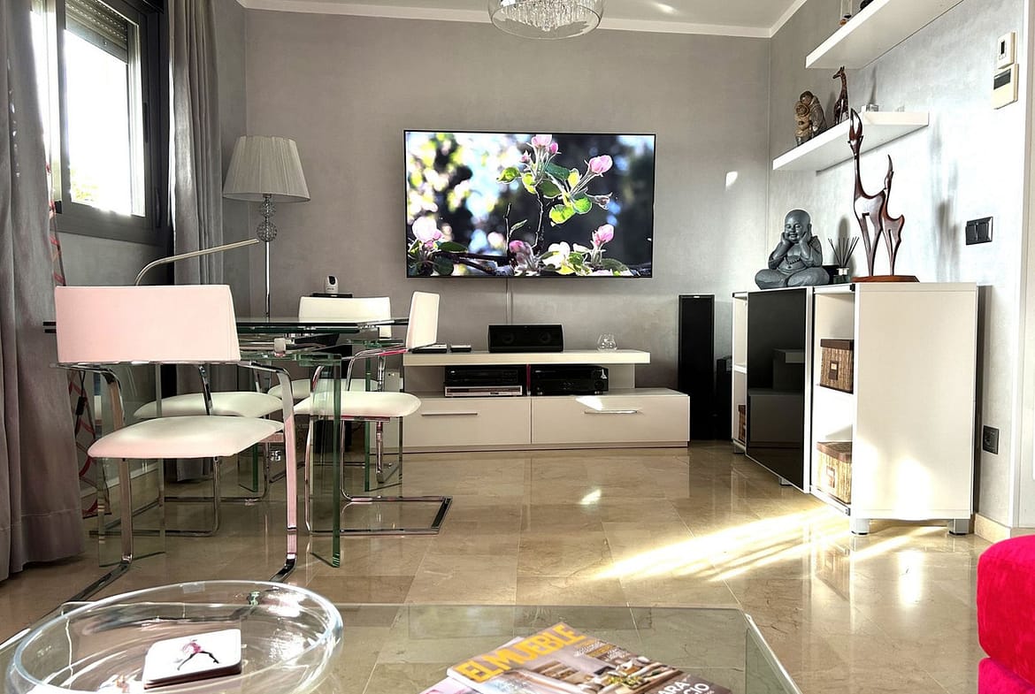 The apartment, located on the third floor with an elevator, is completely exterior and has large windows, including in the kitchen and bathroom, providing plenty of light even on the cloudiest days. Its magnificent orientation allows you to enjoy the outdoor areas both in summer and winter. The exterior is equipped with five awnings (three in the front and two in back) that provide magnificent shade, necessary on warm summer days. The rear terrace has indirect lighting (outdoor spotlights) and automatic watering equipment for plants, even reaching the pots in the kitchen window. Inside, the home also features hot/cold air conditioning and an Air Zone device to independently control the temperature of each room. The flooring is marble, and the windows are double-glazed aluminium.