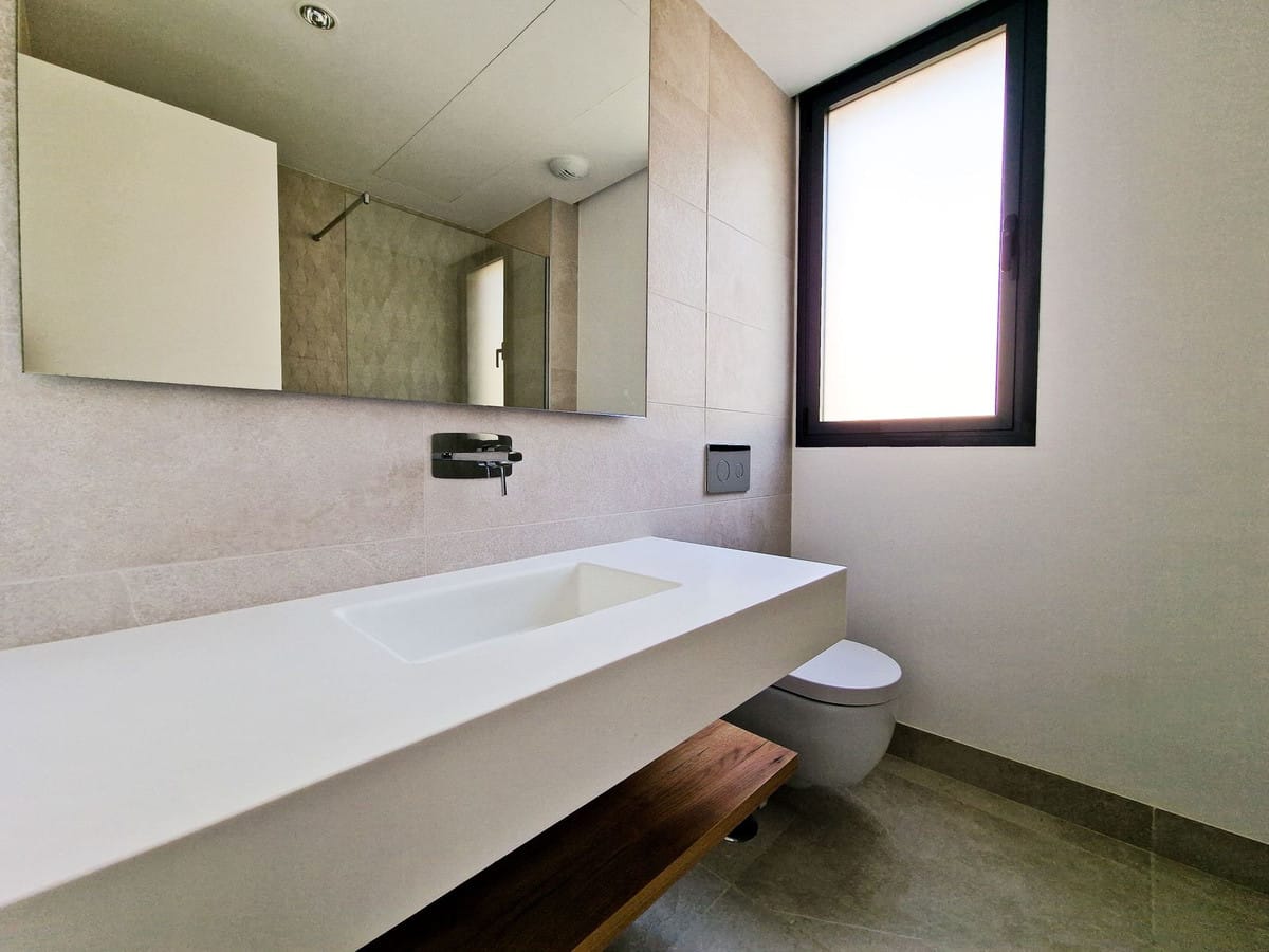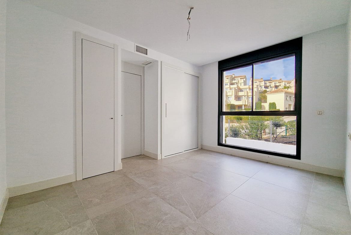 Urb. Artola Homes!!! Discover the charm of this 2-bedroom luxury apartment nestled in the coveted enclave of Artola, just a delightful 20-minute stroll from the beach. The main allure of this residence lies in its prime location in a luxury complex boasting a gym and indoor pool. As you step inside, a discreet laundry room to your right, provides ample shelf-space for linen and the washing machine and tumble dryer. The 2 bedrooms are all conveniently located ahead of you (one of which is ensuite), and the kitchen/dining area is immediately to your left, leading out to the spacious terrace. The apartment is equipped with an energy-efficient heat pump system that bestows hot or cold air according to your needs. Both bathrooms also have underfloor-heating. Easy access to the rooftop terrace, where you can enjoy the sun throughout the year. Parking is a breeze with not one but two dedicated spaces – an indoor space for your vehicle and an outdoor convenience for guests. This flat is nestled within a secure gated complex, granting you exclusive access to a cutting-edge gym for your fitness pursuits. Step into the outdoors to find a spacious pool area, perfect for unwinding in the Mediterranean sun. For those cooler days, retreat to the heated indoor pool.