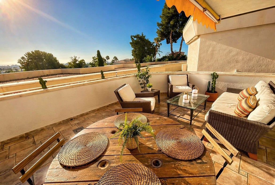 The property enjoys pleasant views of the mountains, the golf course, and partial sea views, creating a peaceful and relaxing atmosphere.