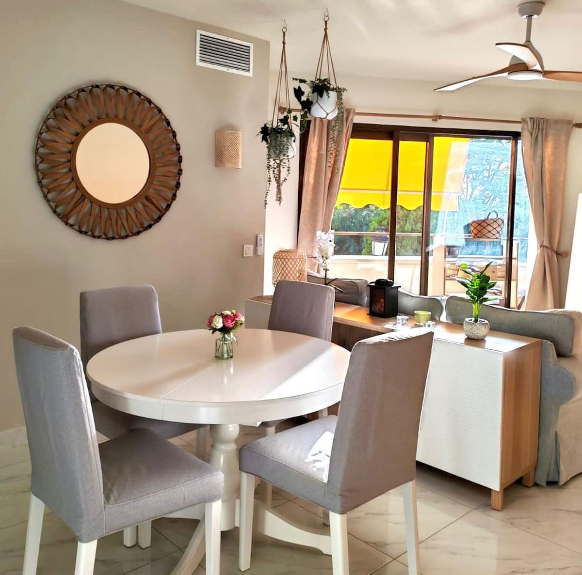 Step into an apartment that feels like home from the very first moment—bright, welcoming, and thoughtfully designed for comfortable living. With 92 m², this property offers an excellent layout featuring 2 generous double bedrooms, each with built-in wardrobes and direct access to its own covered terrace. Both bathrooms have been fully renovated—one ensuite with a bathtub, and the other with a walk-in shower—providing practicality and style in equal measure.