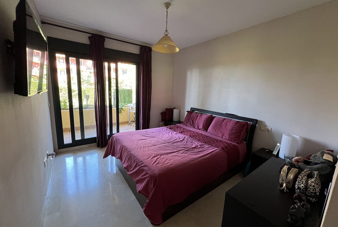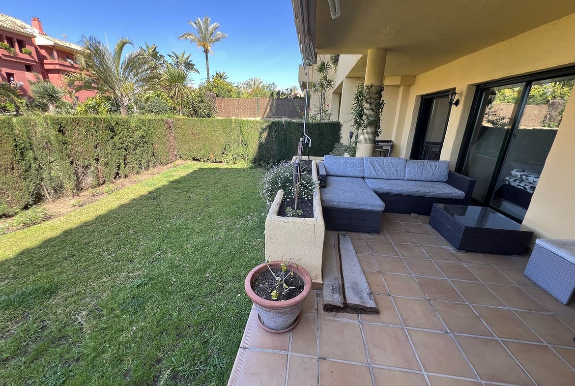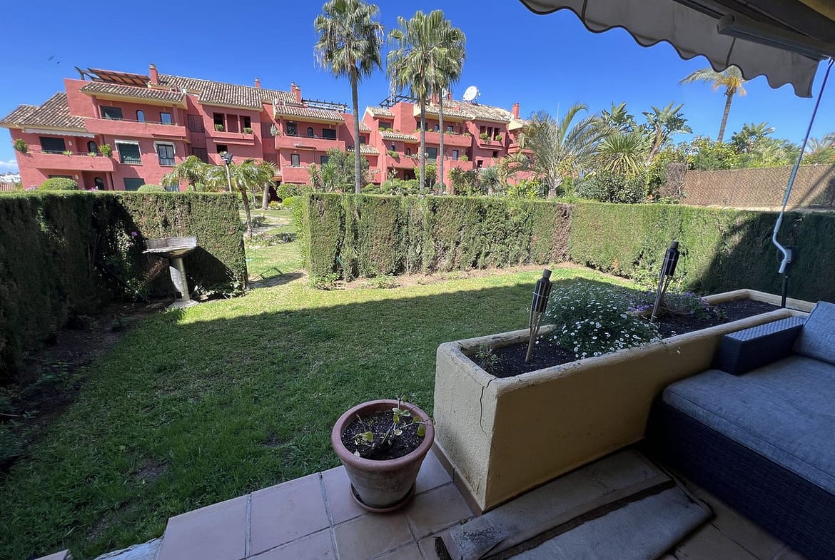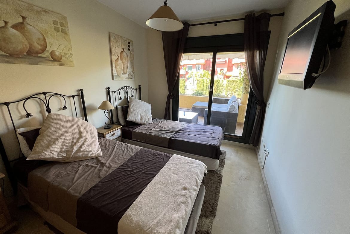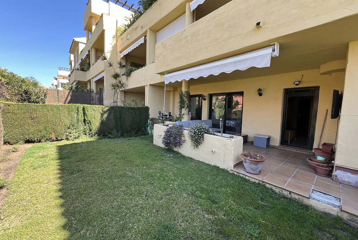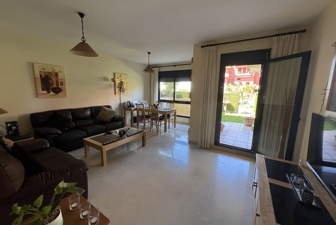 Situated in a complex close to amenities and the village of Cancelada, this apartment makes an ideal family home, or holiday home for golfers, or sun and beach lovers. Its spacious interior features large living / dining room with access out to the terrace and west facing garden, kitchen, separate utility room, master bedroom with ensuite and a further double bedroom plus family bathroom.