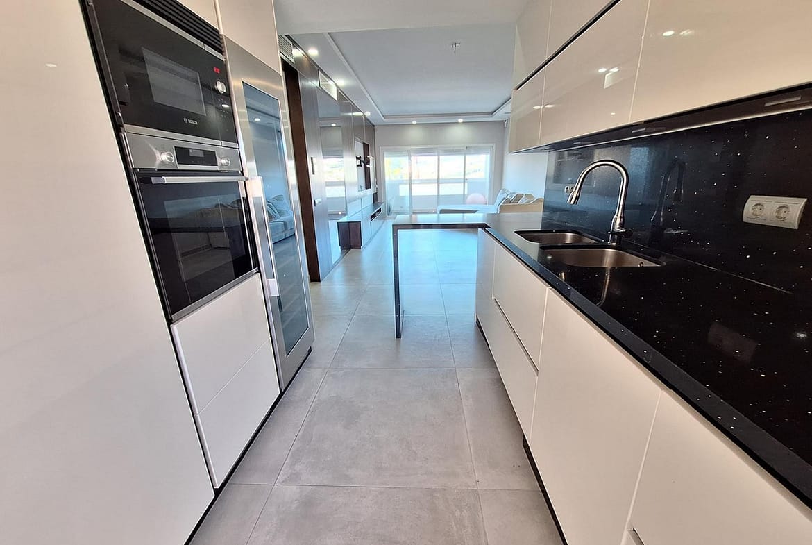 This contemporary two-bedroom, two-bathroom apartment is situated in the desirable Bel Air area of Estepona East, Malaga. The property boasts an enviable location, nestled mountainside yet conveniently close to local amenities, transport links, shops, schools, and the vibrant town centre. Its proximity to the sea and sandy beaches, as well as children’s playgrounds, makes it an ideal choice for both families and professionals seeking a blend of tranquillity and accessibility.