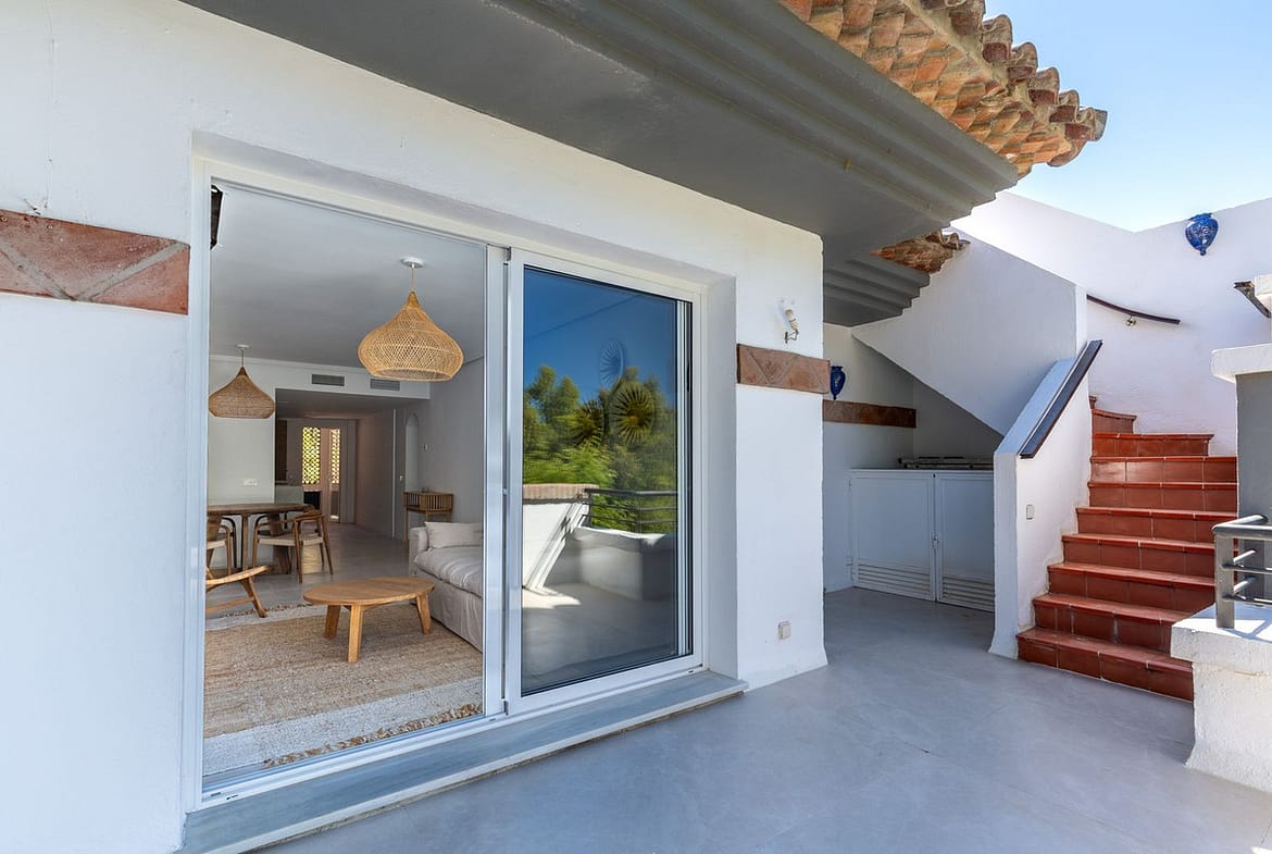 This beautiful apartment in El Lago, Los Arqueros, has an area of 178 square meters, of which 79 square meters are inside with an adjoining terrace of 20 square meters and a solarium of 79 square meters with kitchen, barbecue, 2 toldos, a sofa and a table with chairs. It has been completely renovated in 2025, including the windows with electric shutters. The kitchen + utility room and the 2 bathrooms are completely new, including plumbing and electricity. The new furniture is included, including a washer-dryer. A beautiful swimming pool with sunbeds 50 meters from your front door. In this apartment you can immediately enjoy your stay on the Costa del Sol. El Lago is located directly on the golf course of Los Arqueros and El Higueral. By car you are on the beach in 10 minutes, near San Pedro, Puerto Banús and Estepona. In 5 minutes you are in the beautiful village of Benehavis, full of atmosphere and coziness. don't miss this opportunity