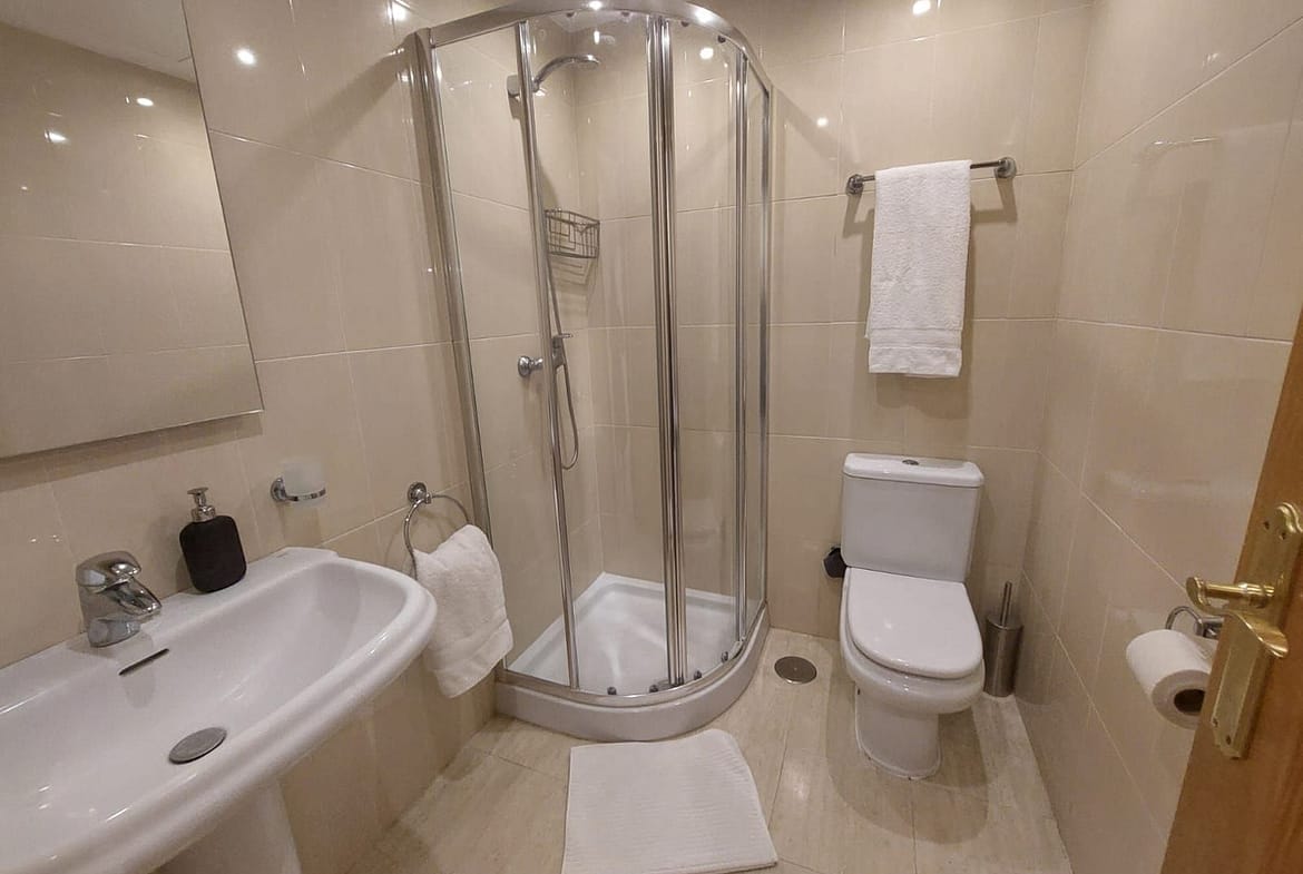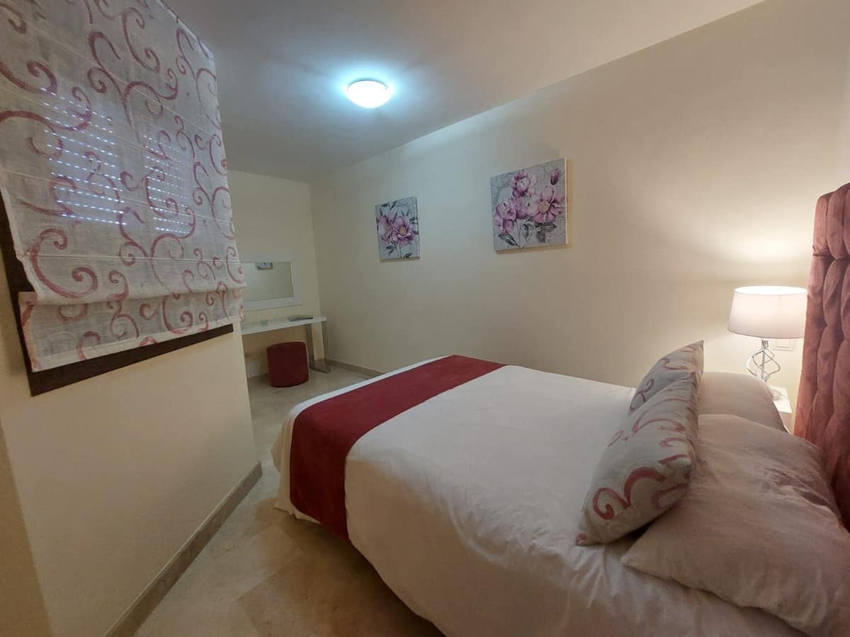 Double doors from the lounge give access to a small covered private terrace. An easy rising marble staircase leads to the upper floor where there is the main double bedroom and large walk-in shower room.