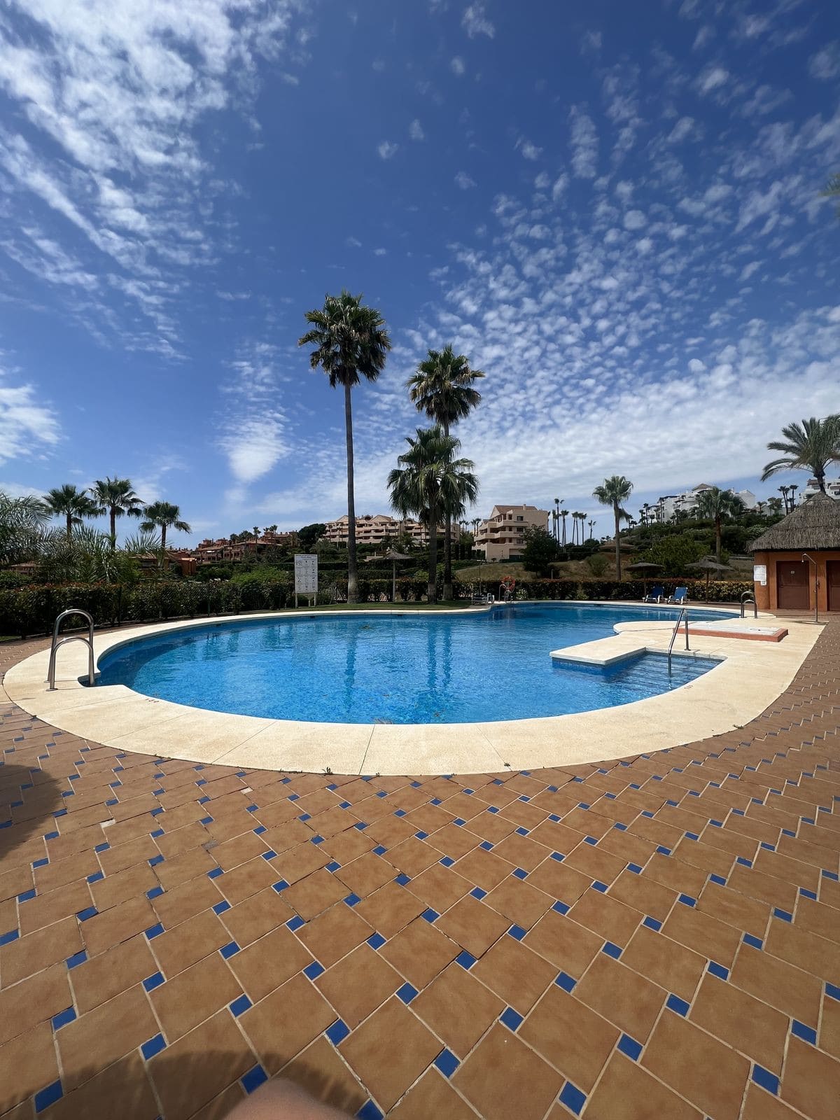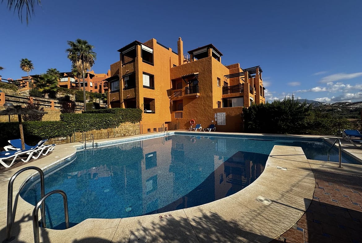 East-facing elevated ground floor with frontal views of the mountains and the pool.