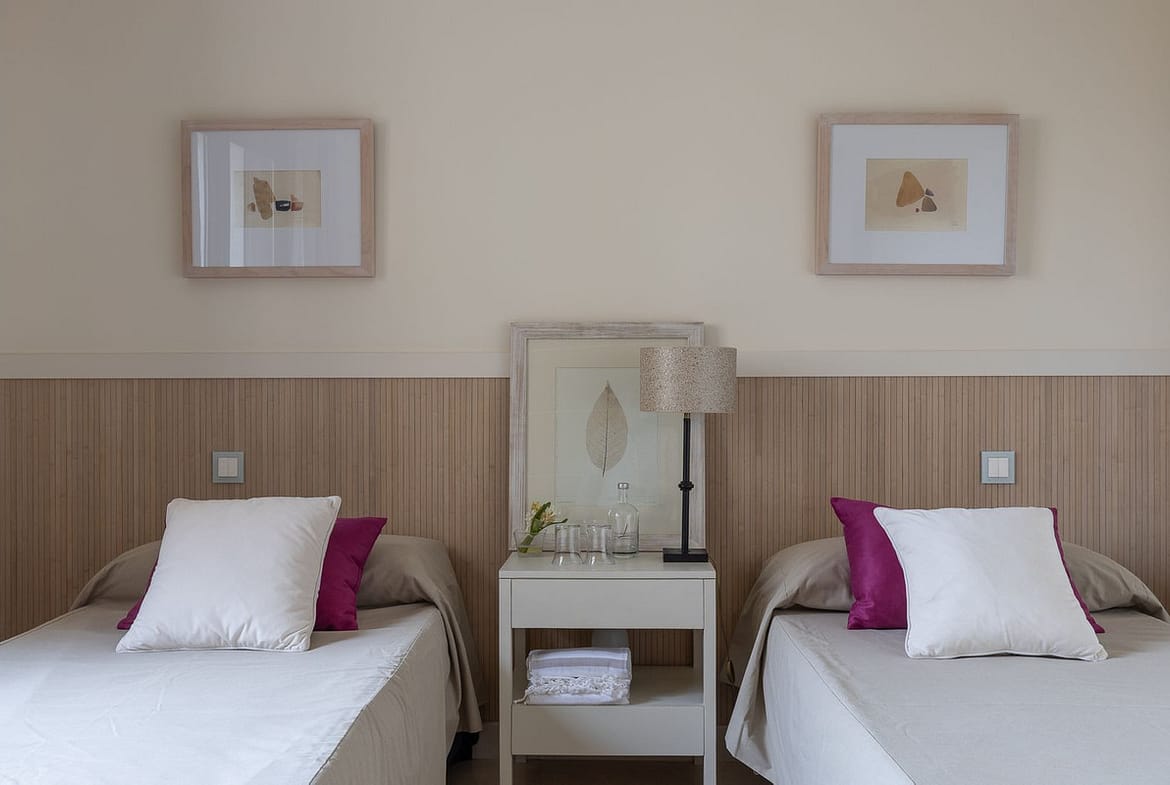 The two bedrooms are exceptionally spacious and offer optimal comfort, each with ample closet space and a tranquil, luxurious feel. Large windows provide plenty of natural light and emphasize the impressive views of both the Mediterranean Sea and the surrounding mountains.