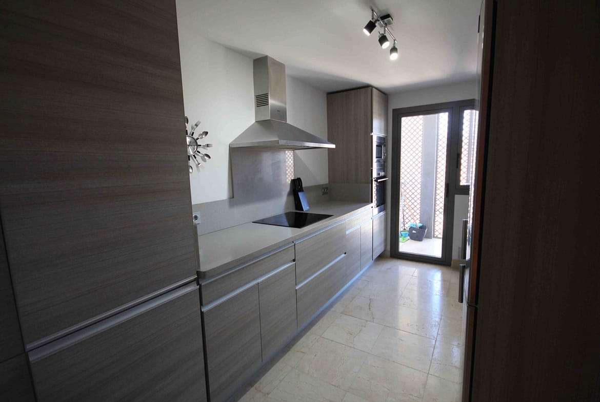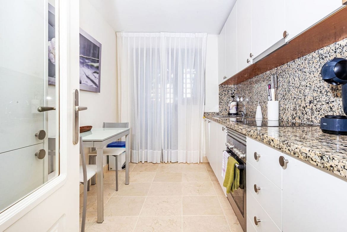 The apartment contains: two bedrooms, with two seperate bathrooms, spacious living room with floor to ceiling windows (with electric blinds), fully fitted kitchen with a separate utility room (equipped with washing machine and laundry dryer). Terrace is equipped with grill and garden furniture.